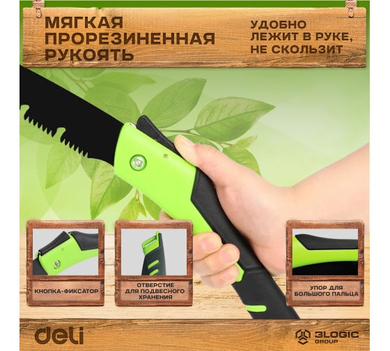 Купить Садовая пила складная Deli DL6006 180мм, сталь 65MN, шаг зубьев 7 TPI, обрезиненая ручка, шлифовка зубов с 3-х сторон, двухрядное распределение кромок