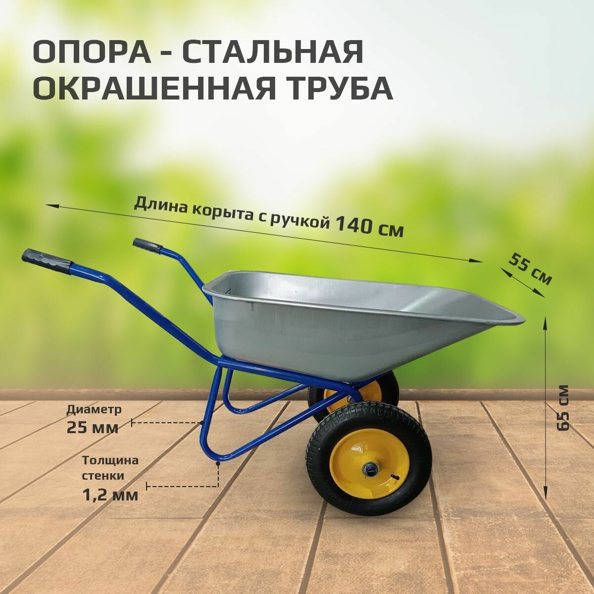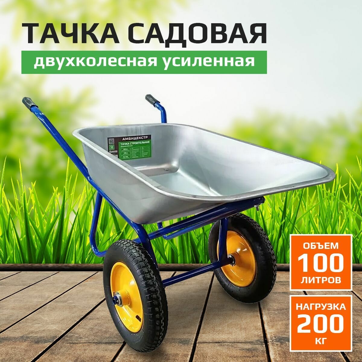 Купить Тачка усиленная садовая, строительная двухколесная 200 кг, 100 литров, Амбидекстр