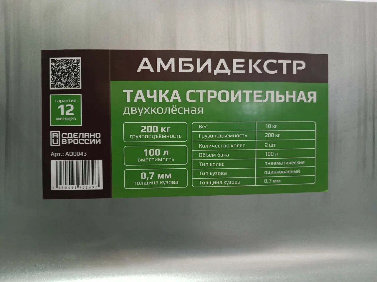 Тачка усиленная садовая, строительная двухколесная 200 кг, 100 литров, Амбидекстр интересное: