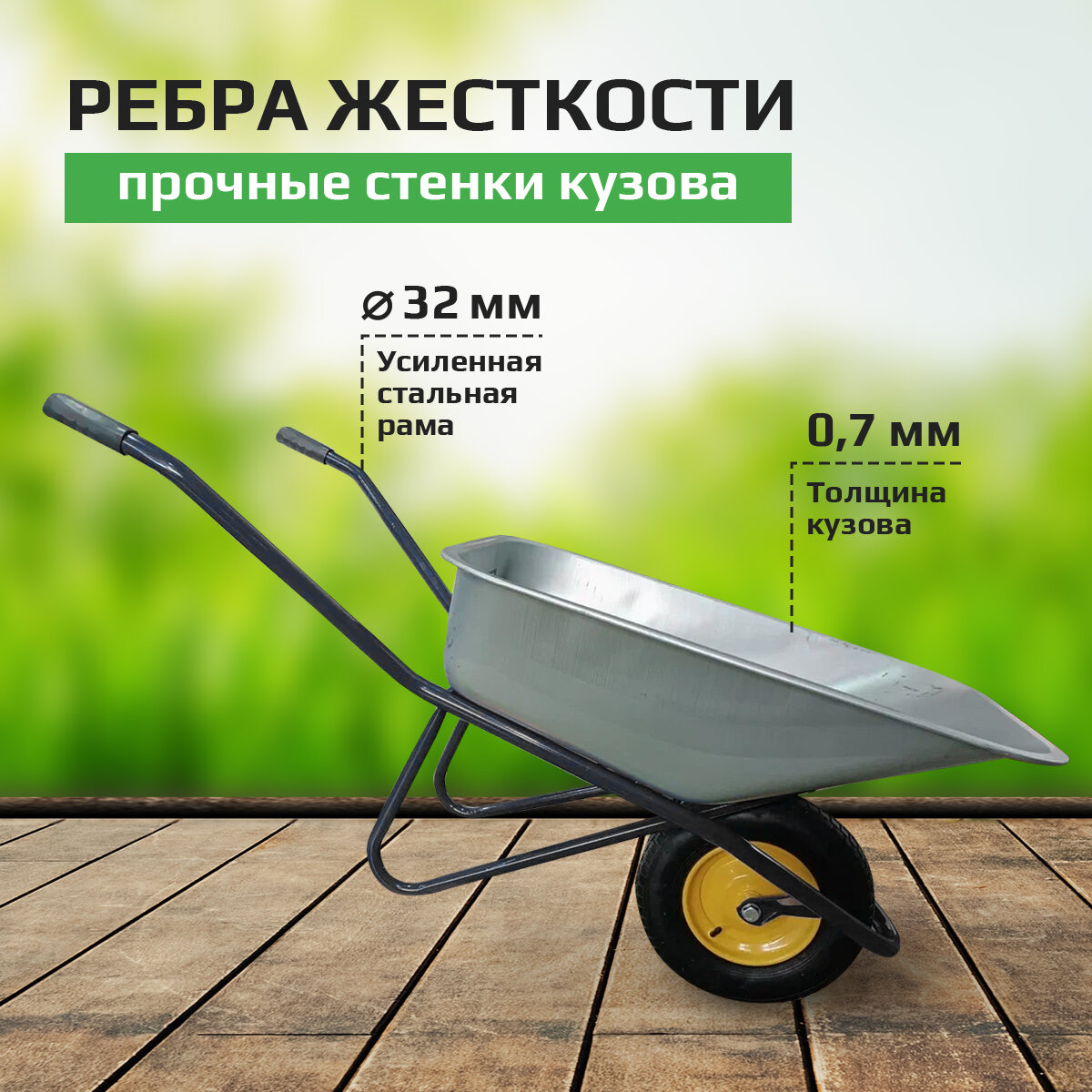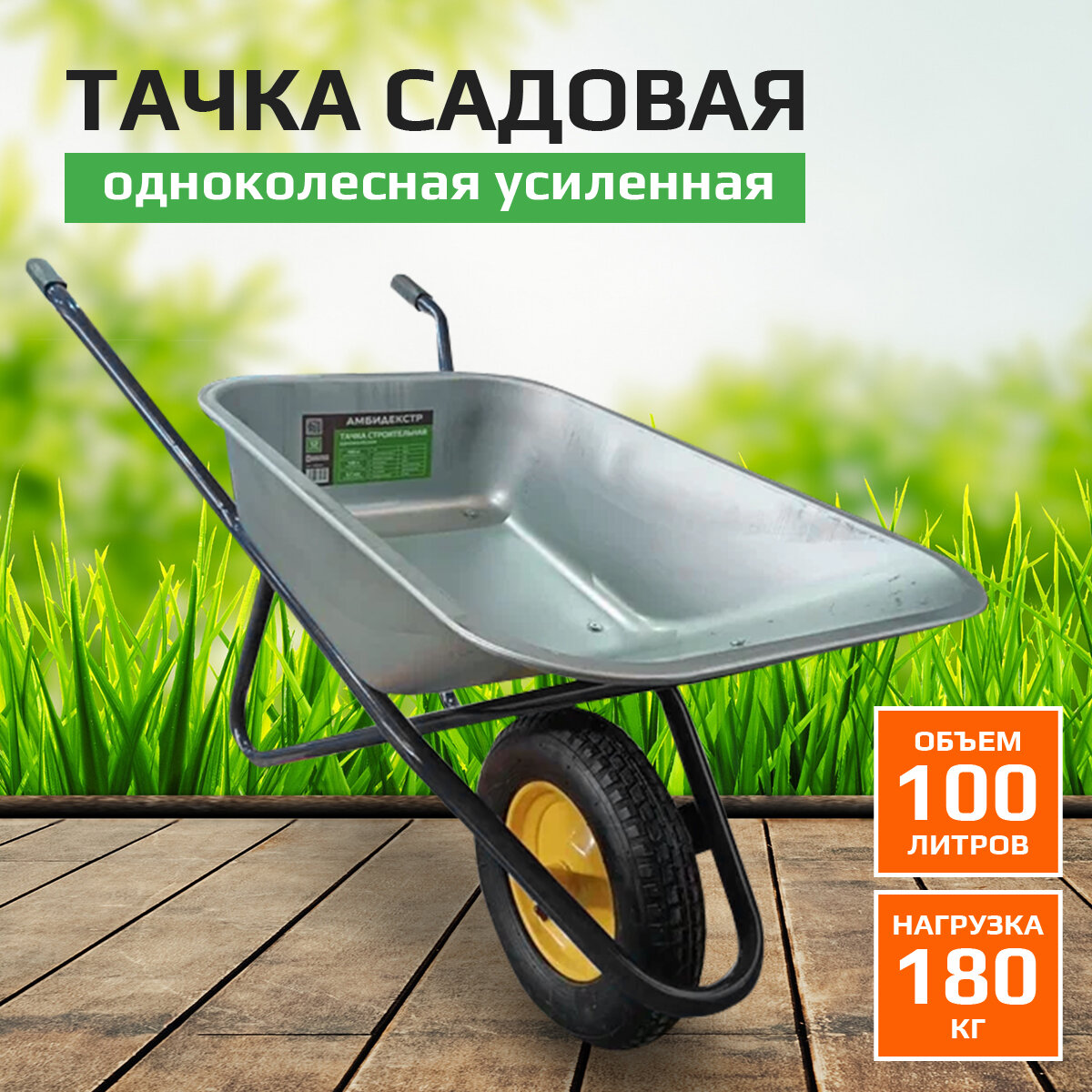 Купить Тачка усиленная садовая, строительная 180 кг, 100 литров одноколесная, Амбидекстр