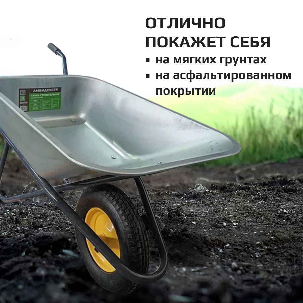 Тачка усиленная садовая, строительная 180 кг, 100 литров одноколесная, Амбидекстр интересное: