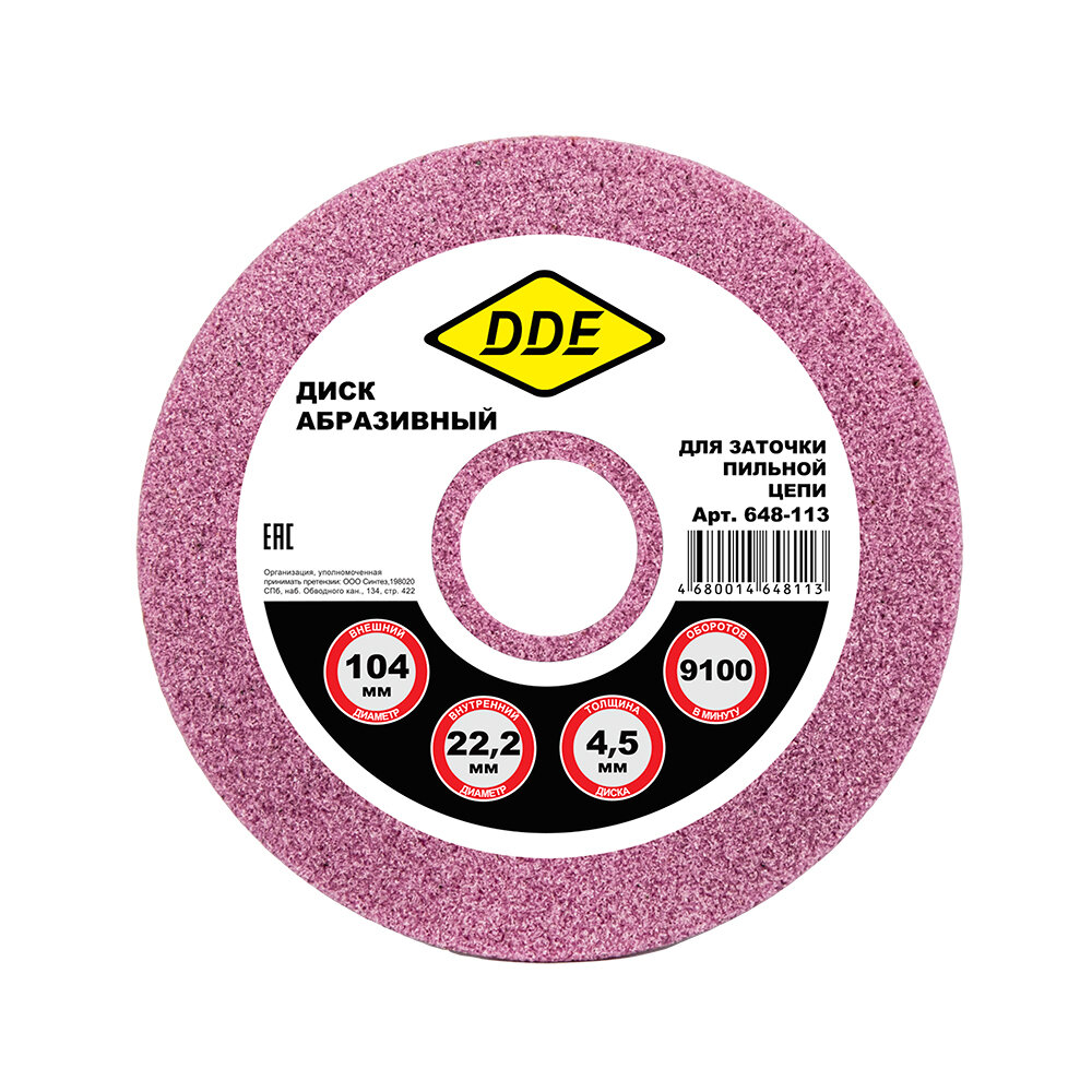 Купить Диск абразивный точильный DDE 104х4,5х22,2 мм для цепи 3/8", 404"