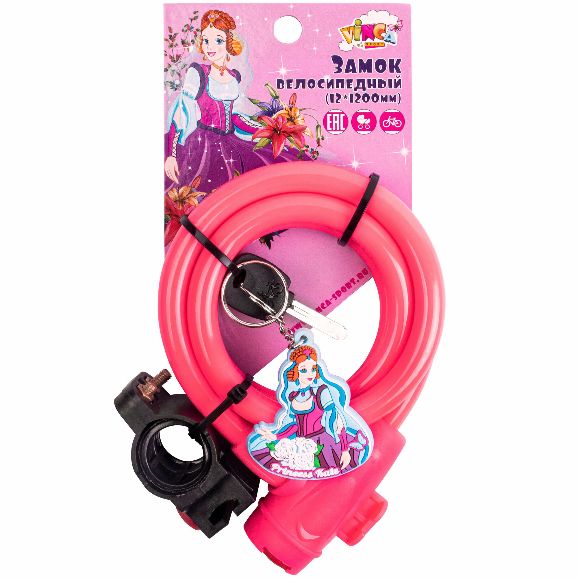 Купить VS 561 Princes Kate. Замок велосипедный c брелоком 12*1200мм, с защитой от влаги и креплением, розовый.