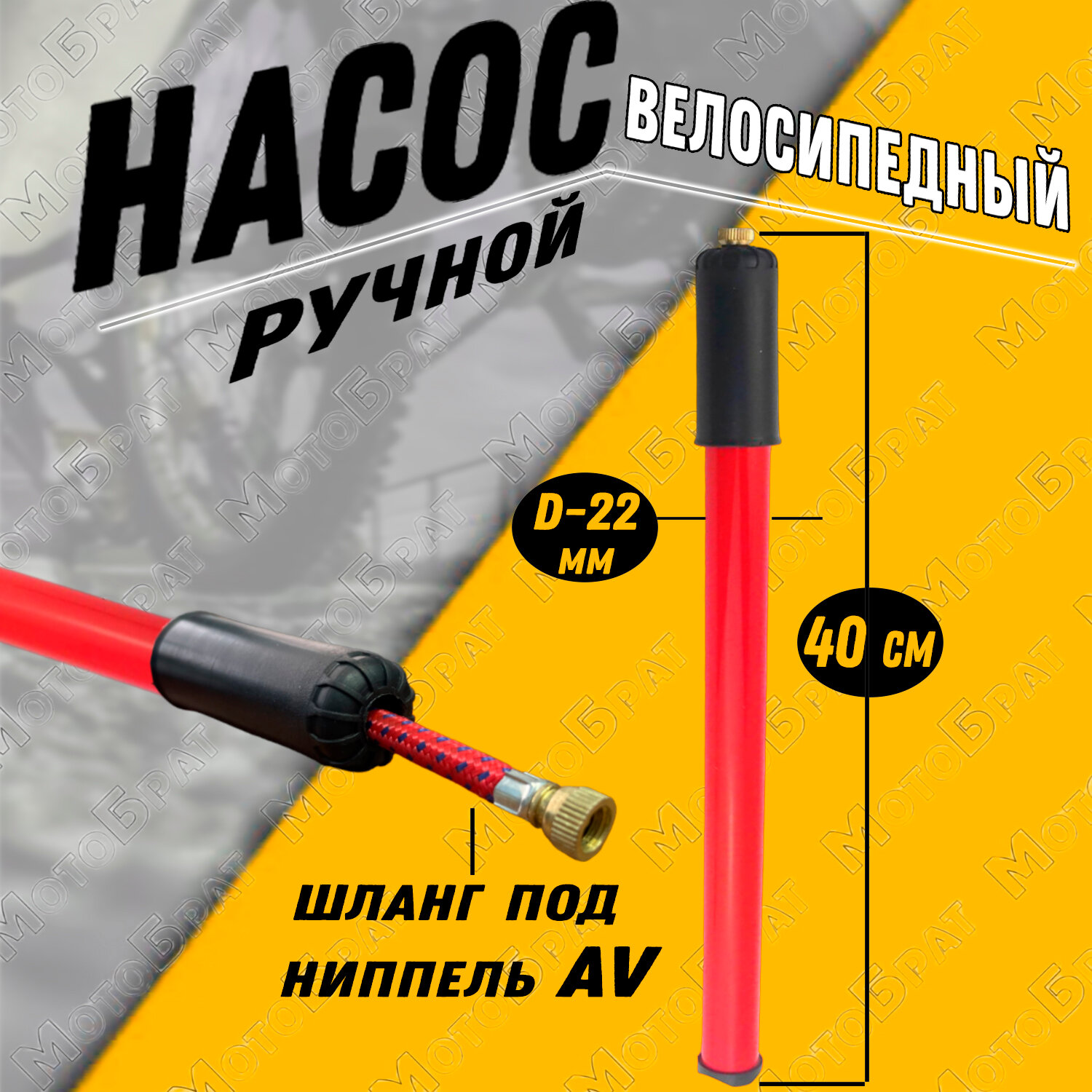 Насос велосипедный ручной красный (22 х 400 длинный)