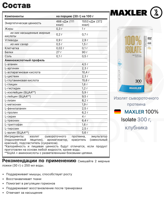 СохранитьИзолят протеина MAXLER 100% Isolate 300 г, клубника интересное: