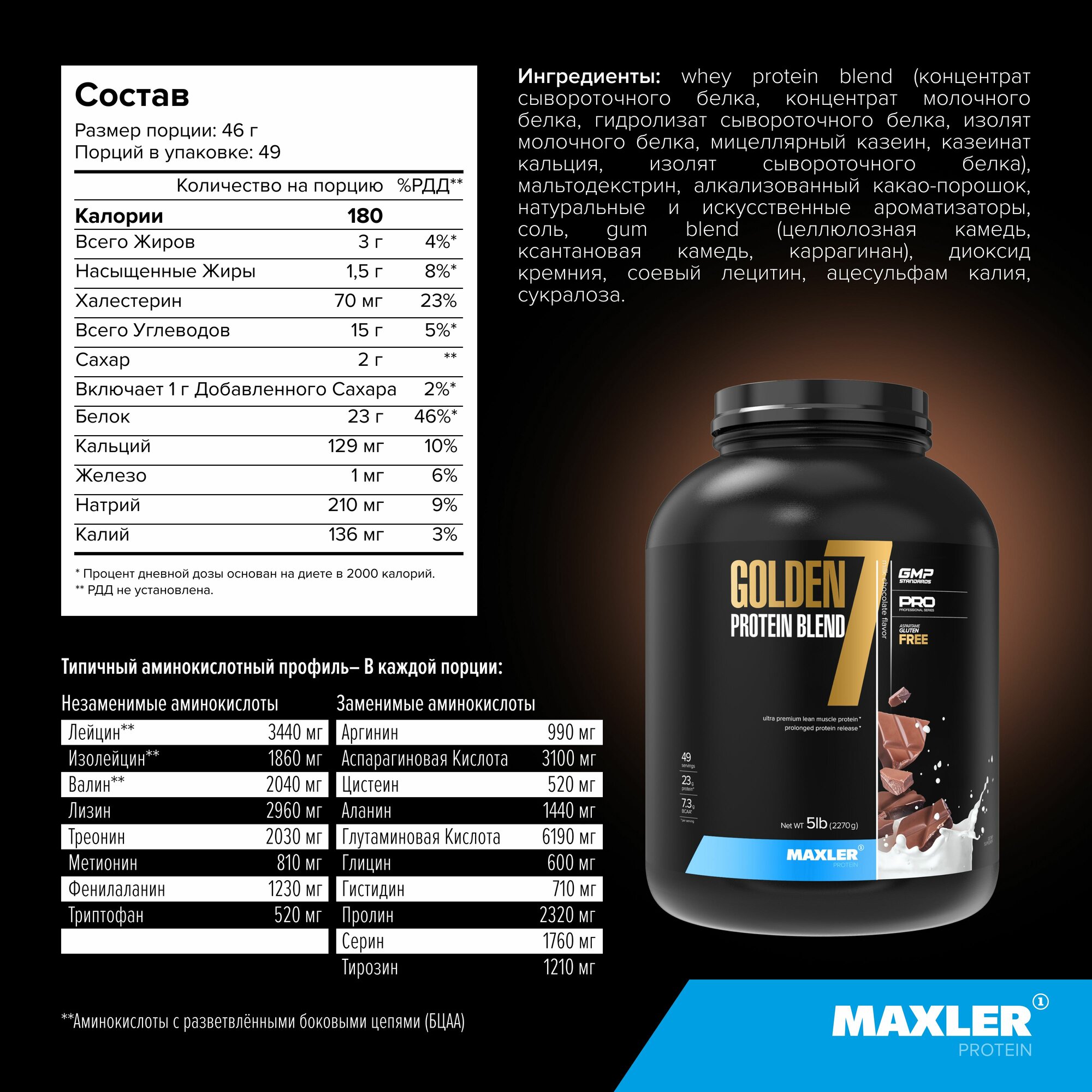 СохранитьMaxler Golden 7 Protein Blend 2270 гр 5 lb (Maxler) Молочный шоколад интересное: