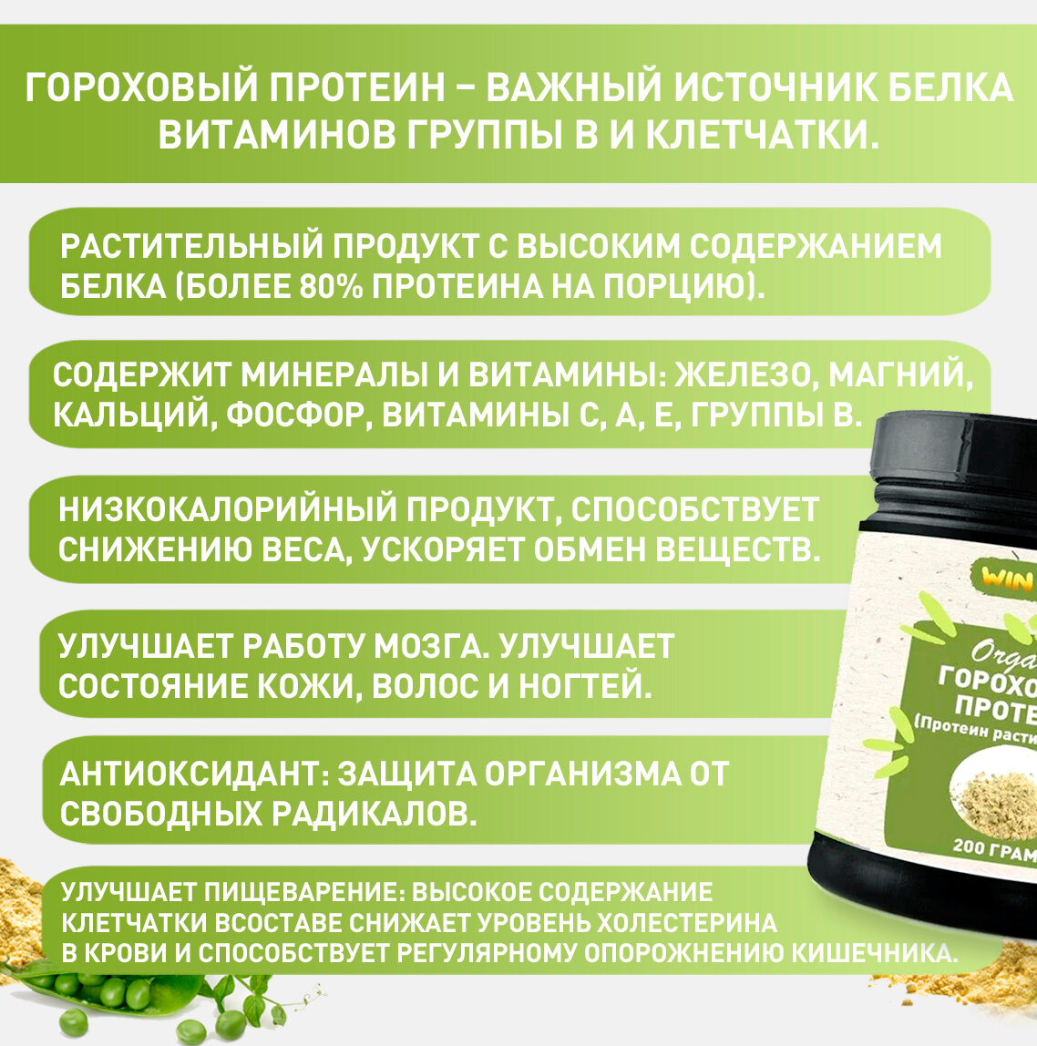 200 г Premium Гороховый Протеин Изолят 85% WIN Healthy . Протеин для суставов, связок, набора мышечной массы, похудения. интересное: