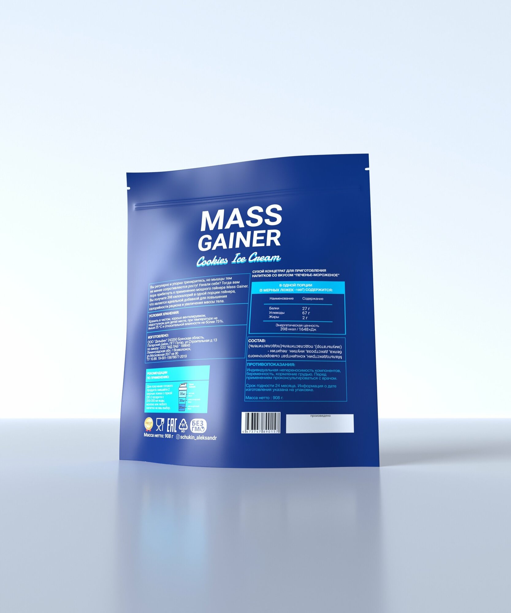 Mass gainer гейнер для набора массы Высокобелковый Печенье-мороженое интересное: