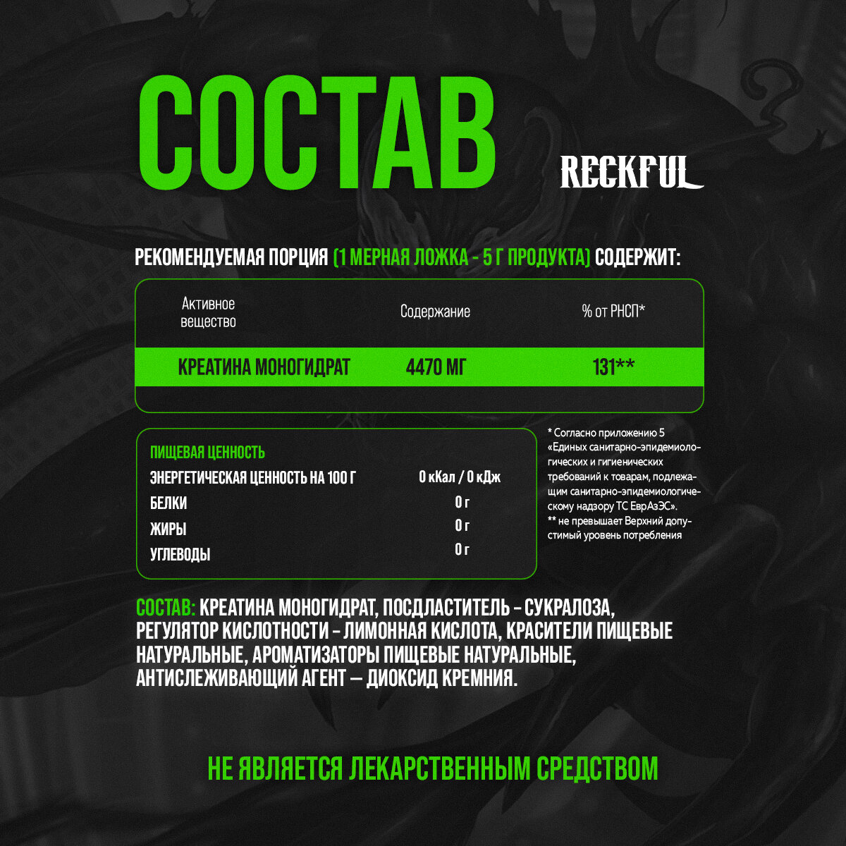 Креатин моногидрат Reckful Creatine monohydrate 200 г (тропик) интересное: