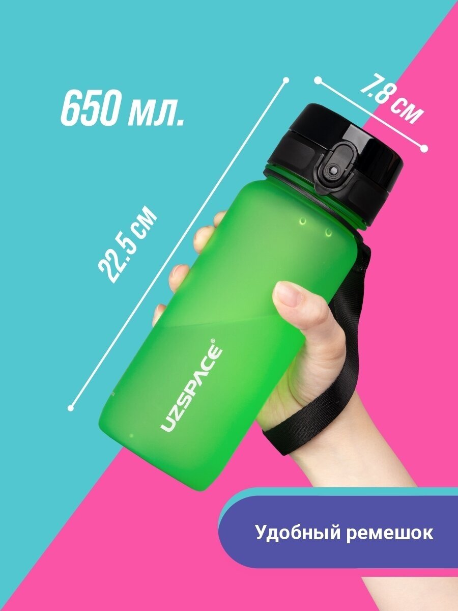 Бутылка для воды спортивная UZSPACE Colorful Frosted, Цвет: Зеленый, 650 мл зеленый