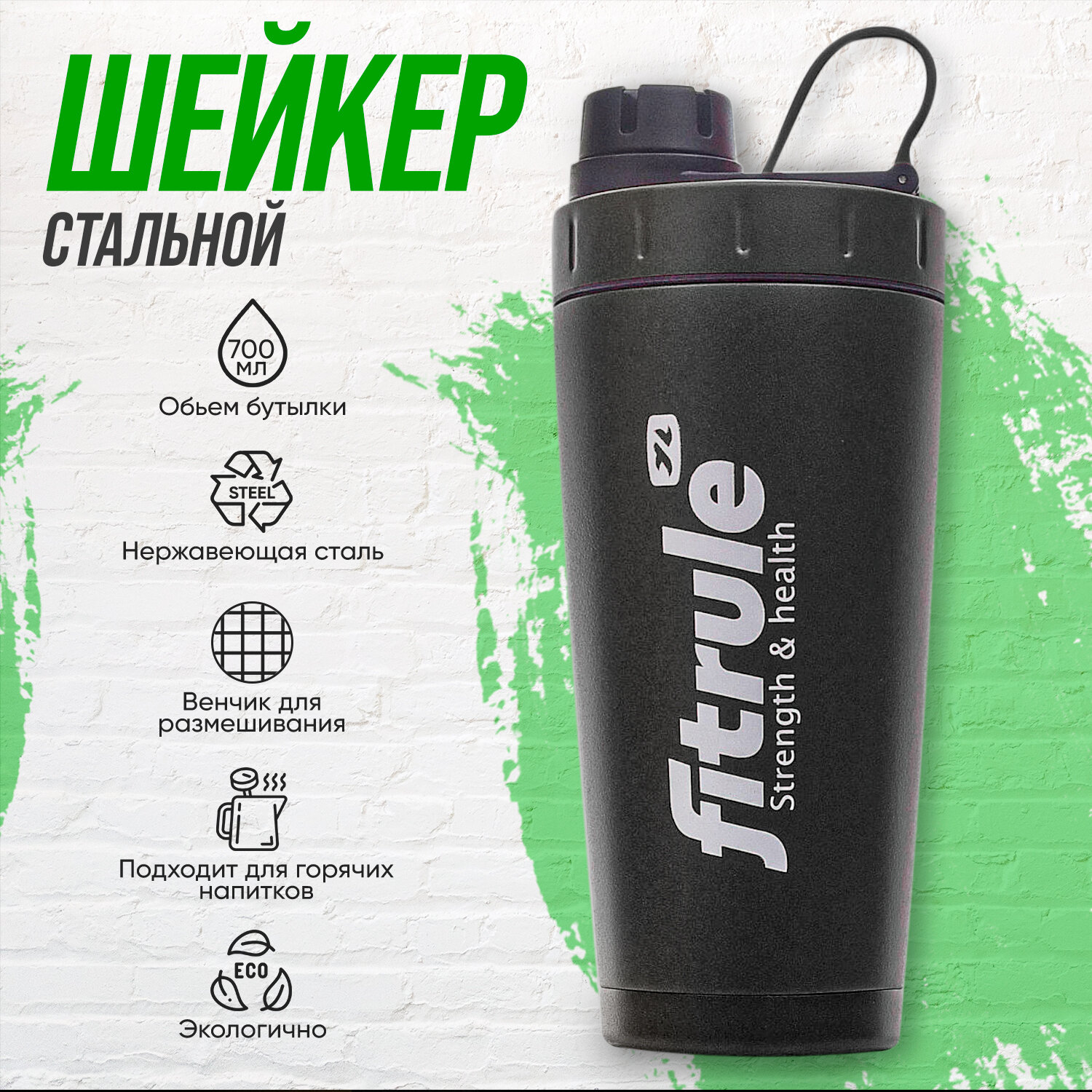 Шейкер FitRule алюминиевый с крышкой Twist 700мл Черный интересное: