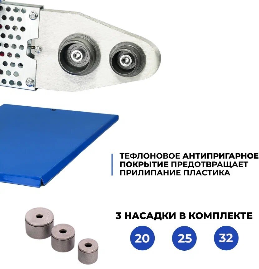 Паяльник для полипропиленовых труб / Сварочный аппарат для полипропиленовых труб / Аппарат для сварки полипропиленовых труб / Electrolite СПТ 900/3 ( 900вт, 20-32мм, регулировка температуры)