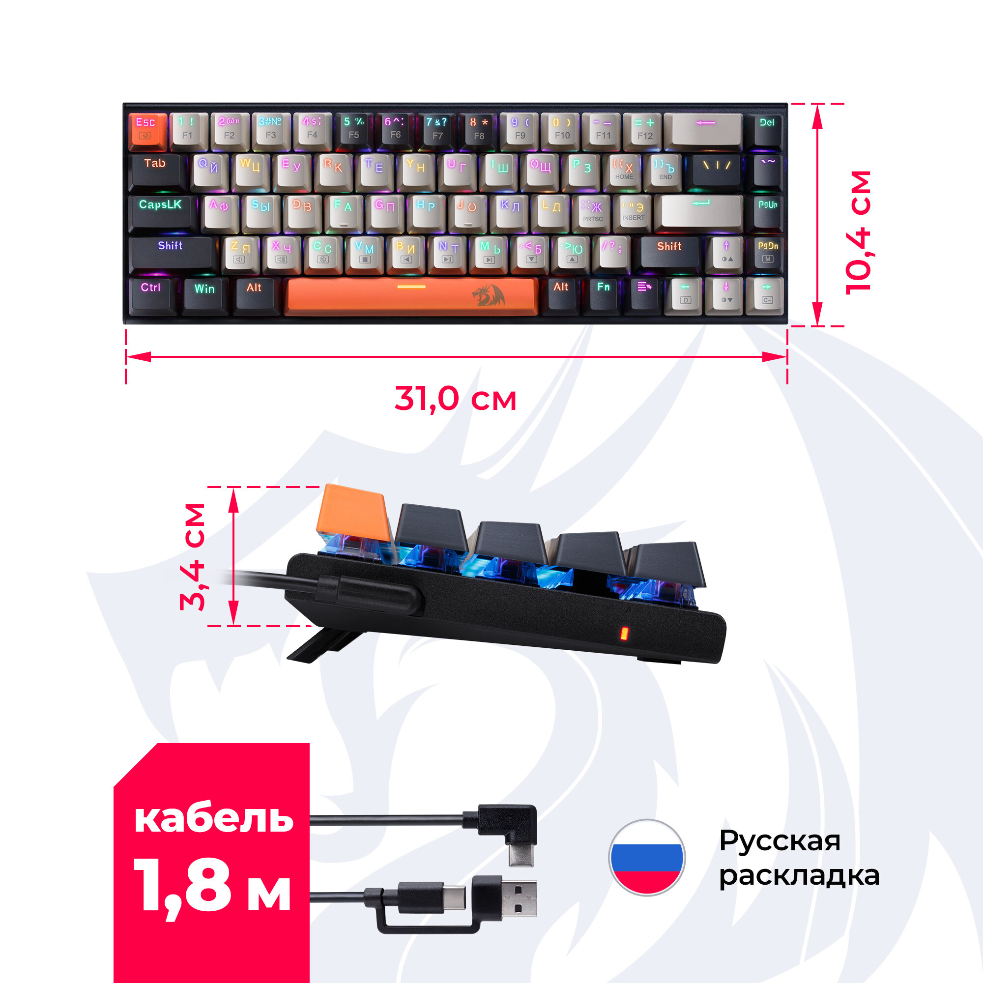 СохранитьМеханическая игровая клавиатура для компьютера Redragon Ryze RGB (65%) интересное: