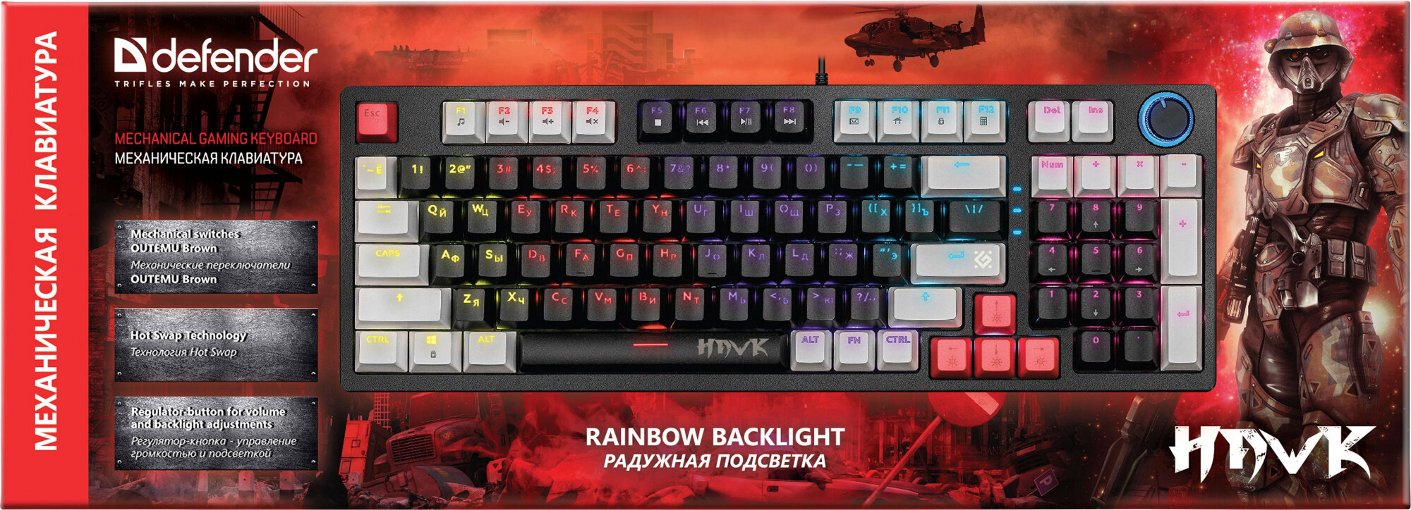 Клавиатура Defender HAWK GK-418 RU (Brown SW) черный/белый (45419) интересное: