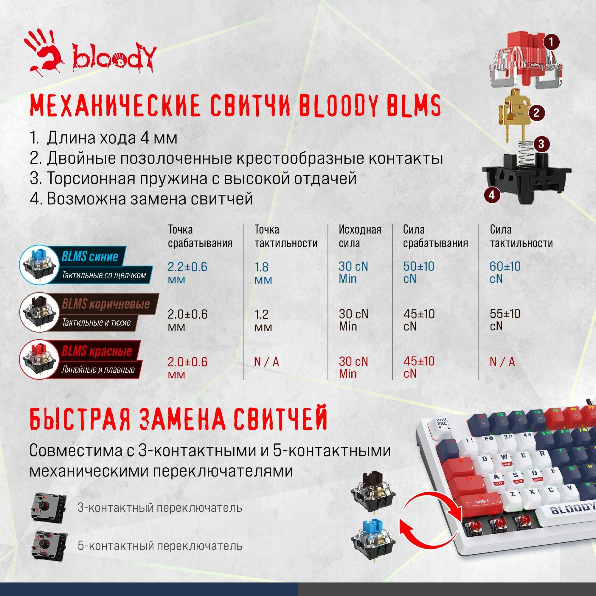 Клавиатура A4Tech Bloody S87 Energy, русские и английские буквы (s87 usb energy white)