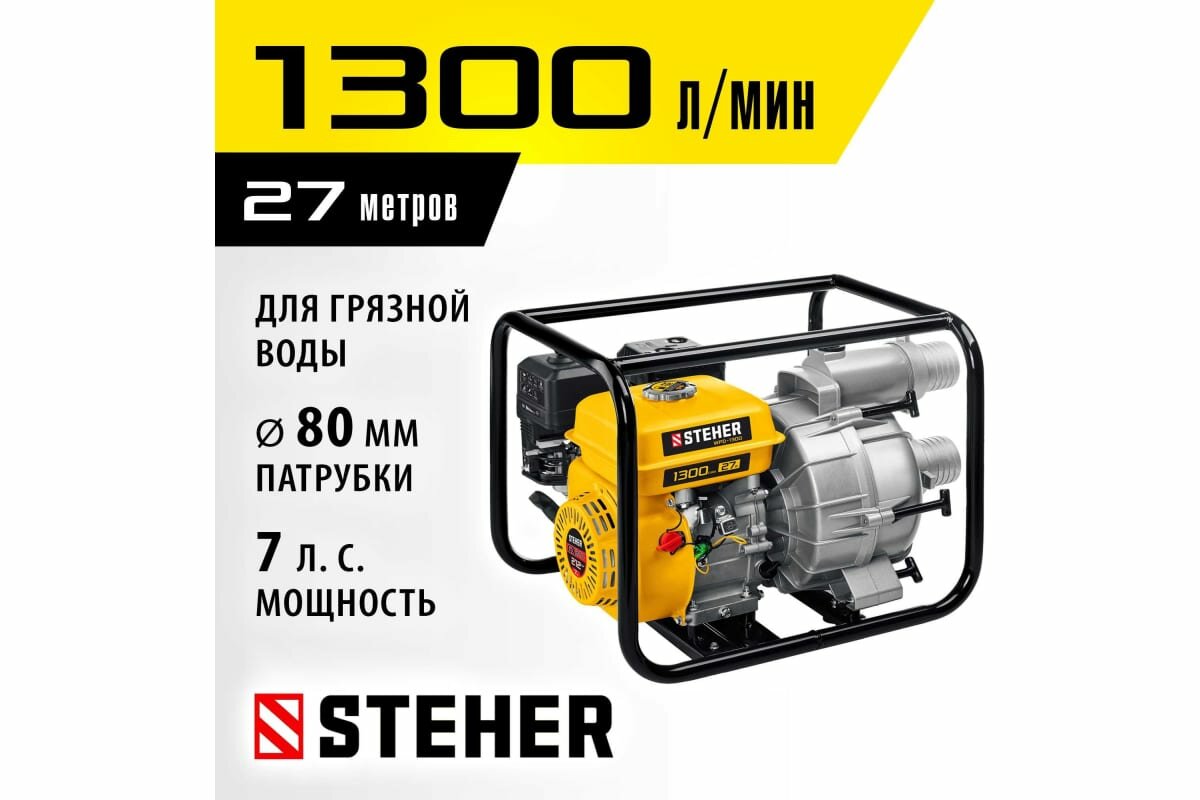 Мотопомпа бензиновая для грязной воды STEHER, WPD-1300, 1300 л/мин интересное: