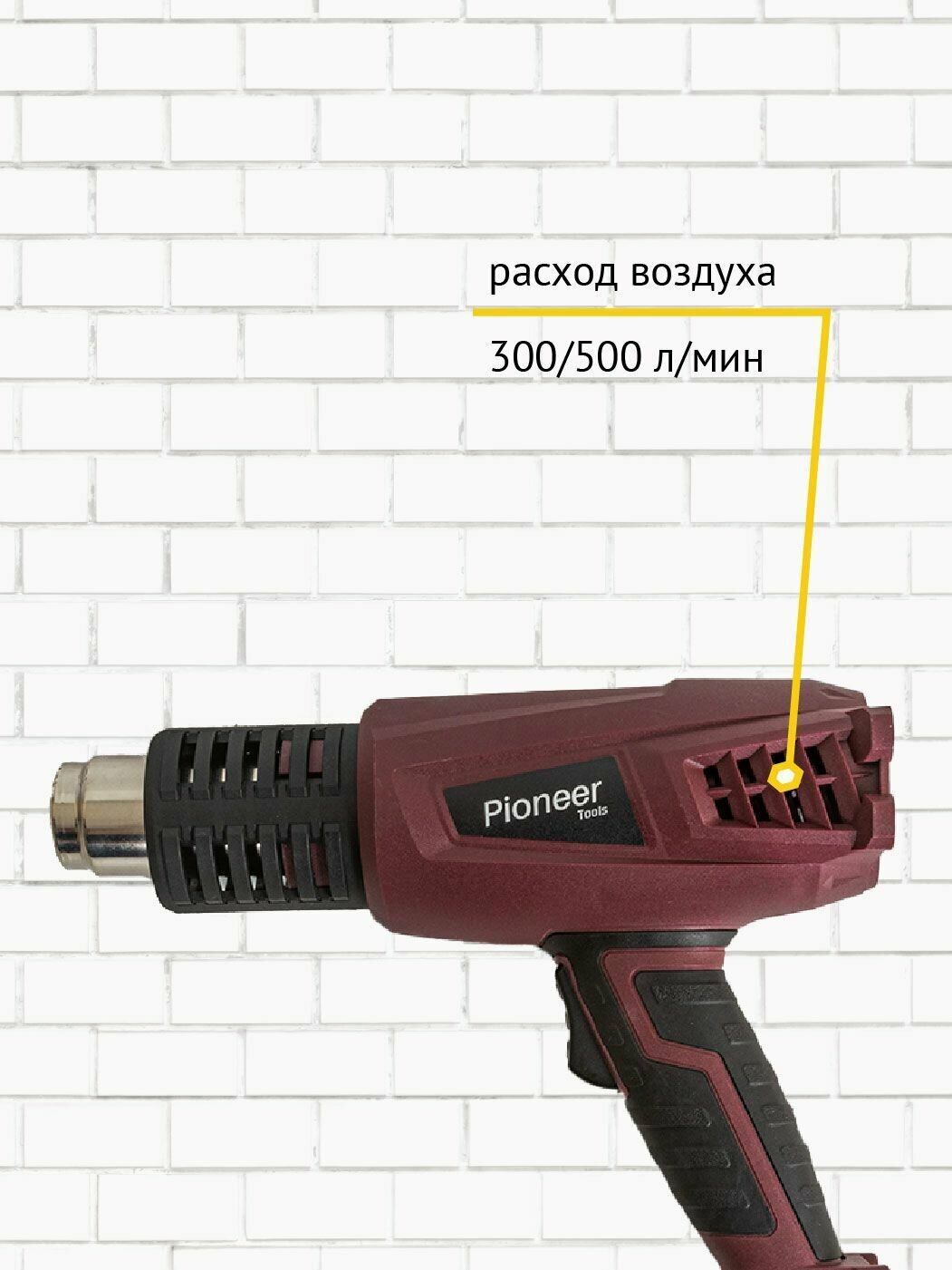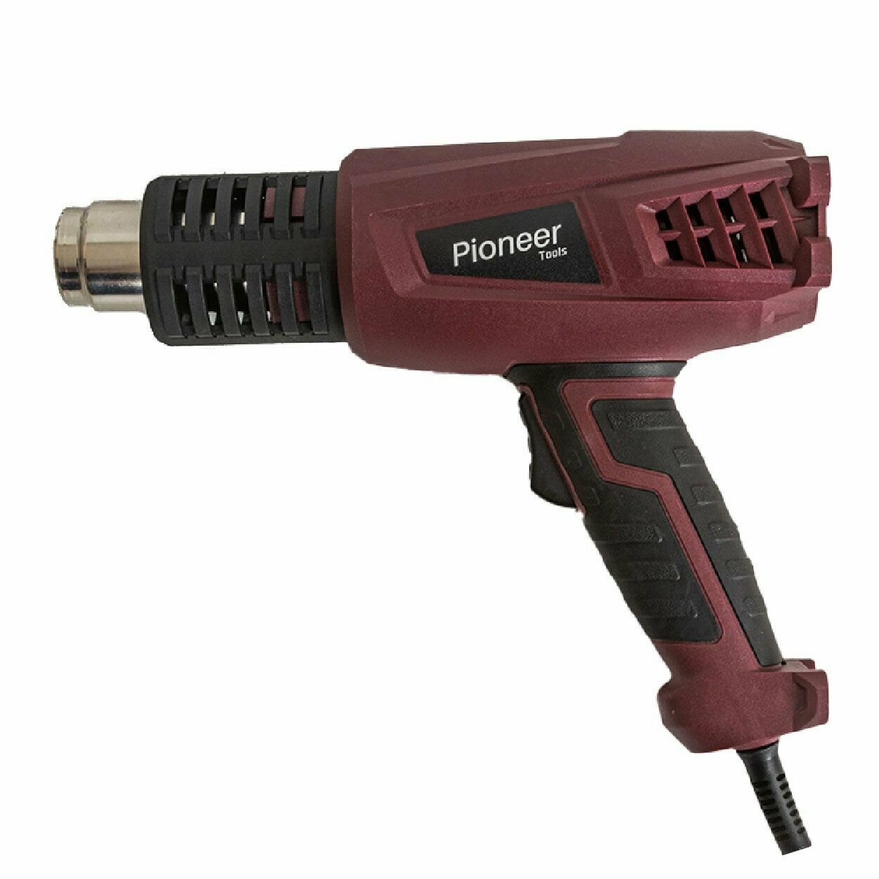 Фен строительный Pioneer с щеточным двигателем, 2 температурных режима 400 и 600 градусов, нагрев за минуту, 3 насадки, 2000 Вт