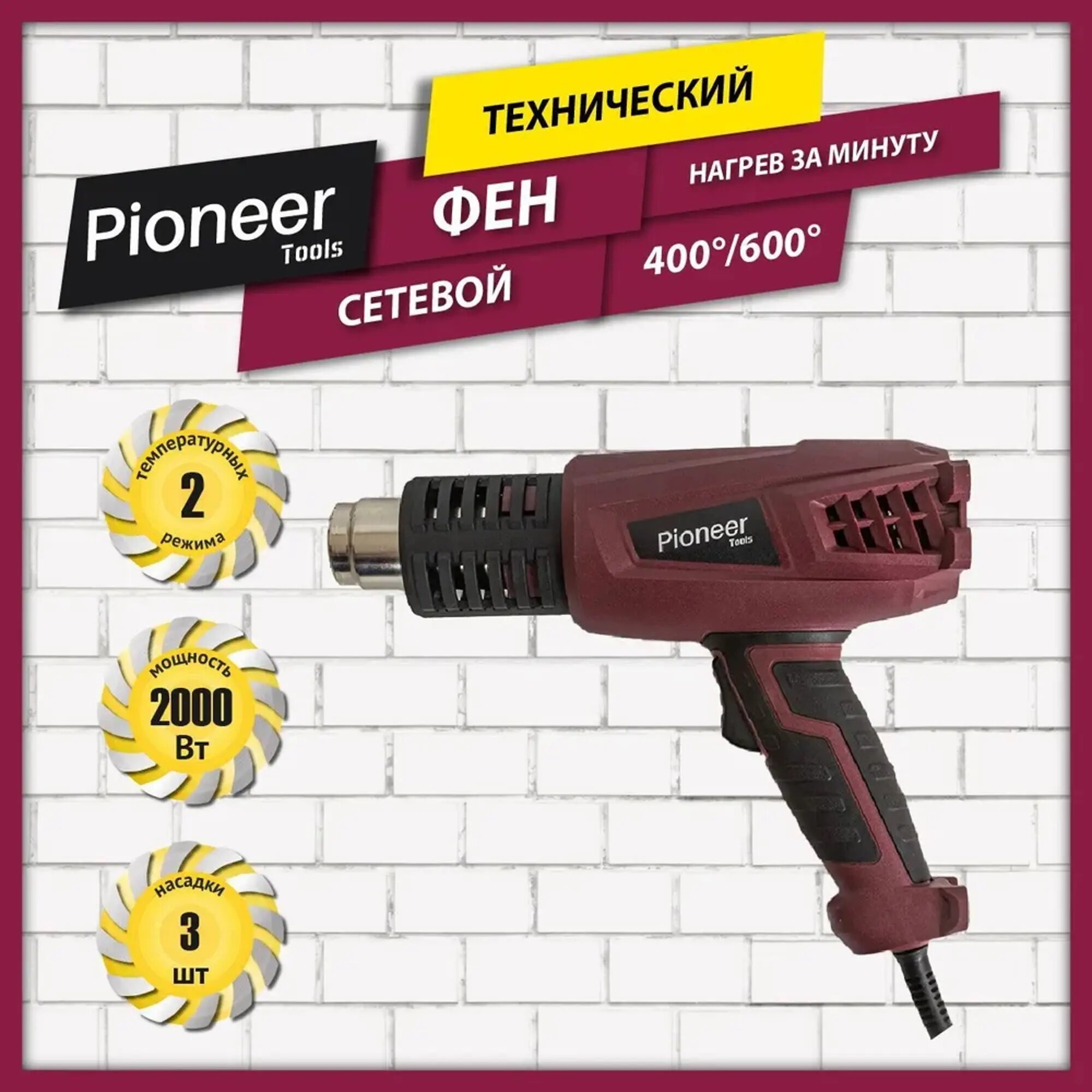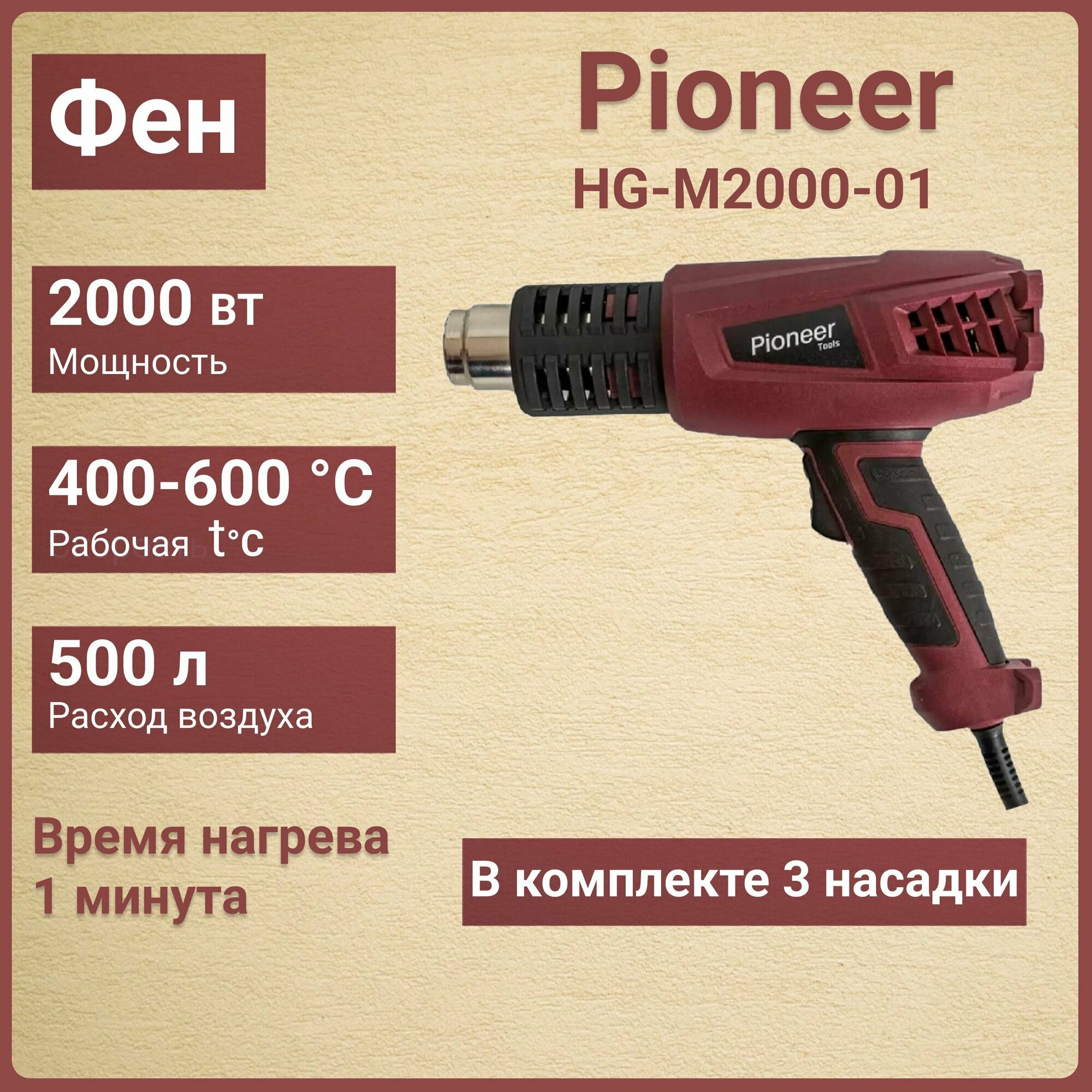 Строительный фен Pioneer HG-M2000-01 с 3 насадками / технический / термопистолет
