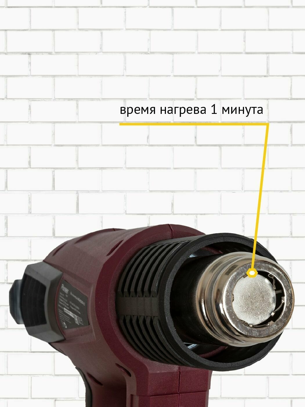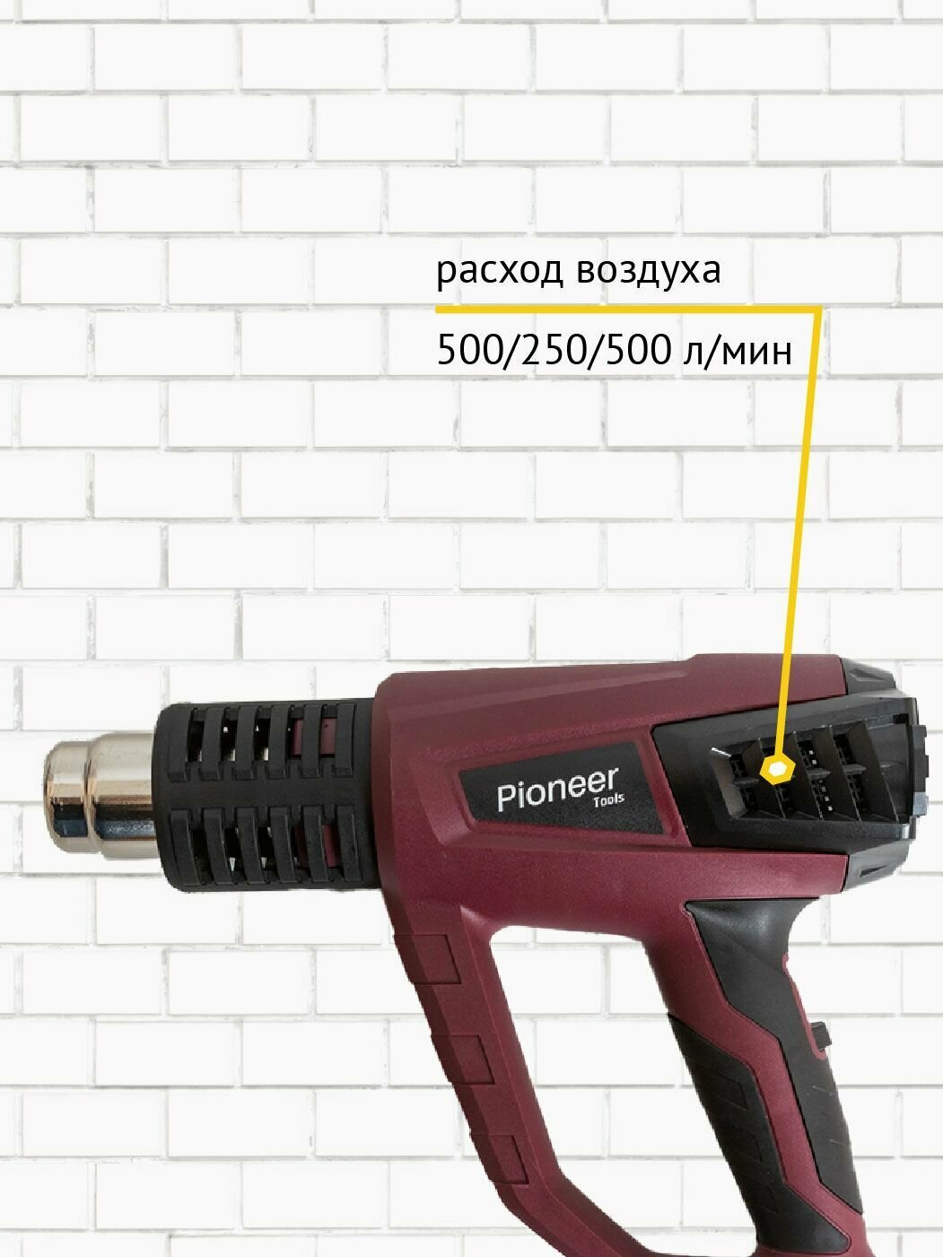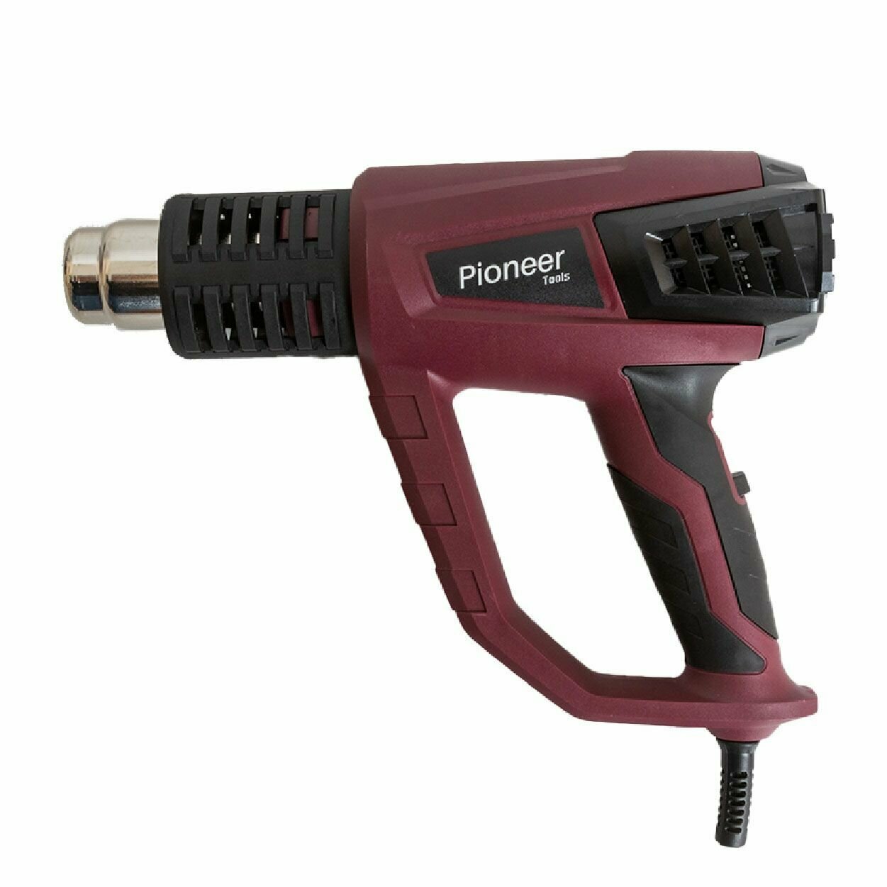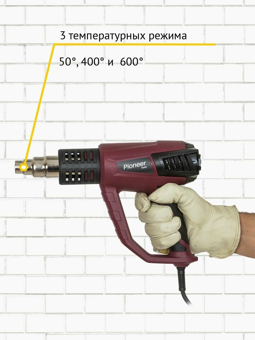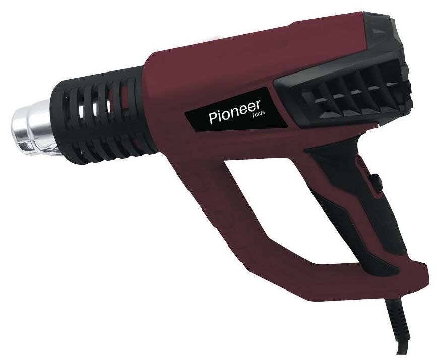 Фен строительный Pioneer с щеточным двигателем, 3 температурных режима 50, 400 и 600 градусов, режим охлаждения, нагрев за минуту, 3 насадки, 2000 Вт
