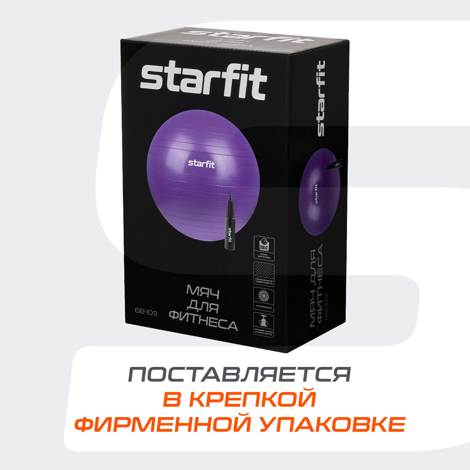 Фитбол Starfit Gb-109 антивзрыв, 1200 гр, с ручным насосом, фиолетовый, 75 см