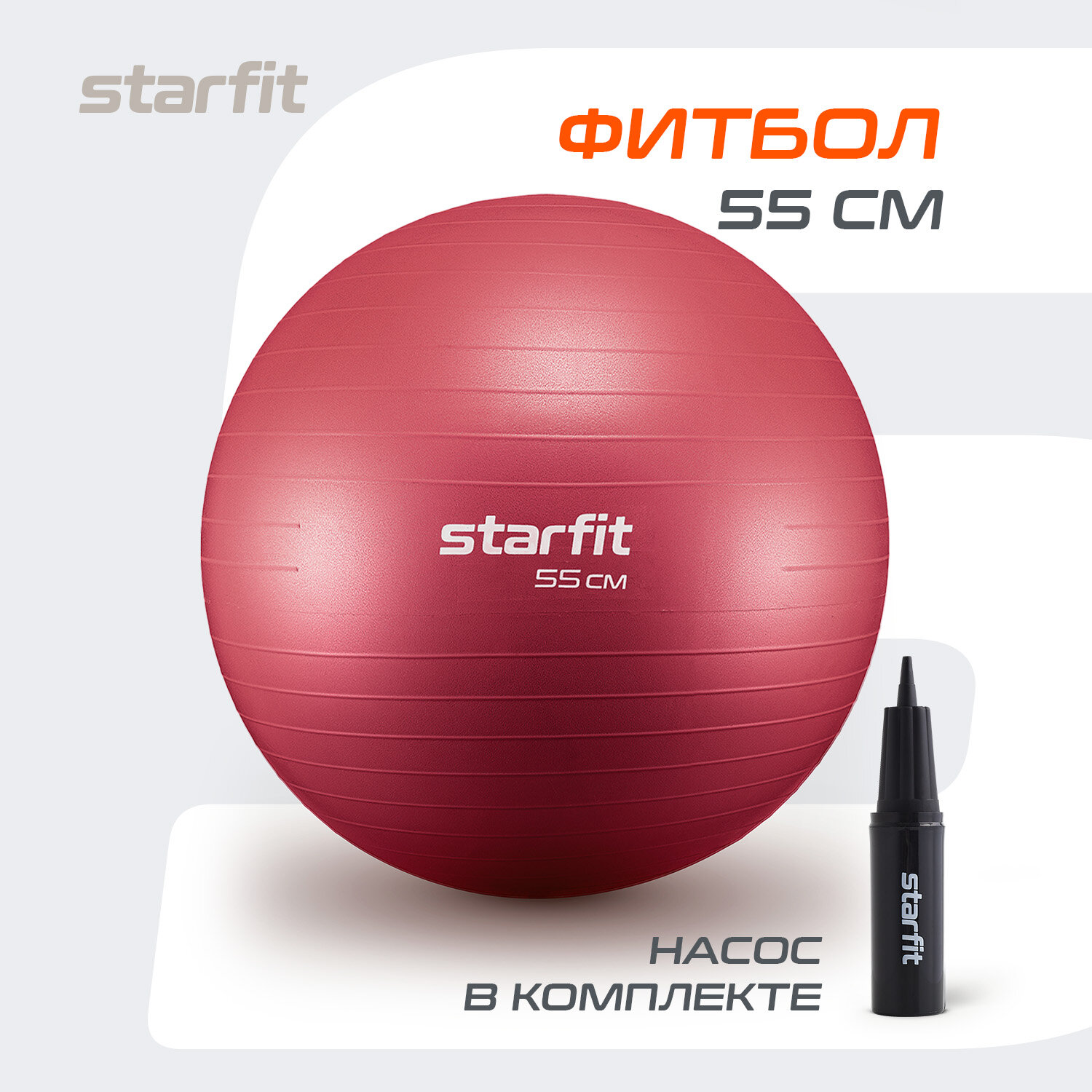 Купить Фитбол STARFIT GB-111 55 см, 900 гр, антивзрыв, с насосом, малиновый