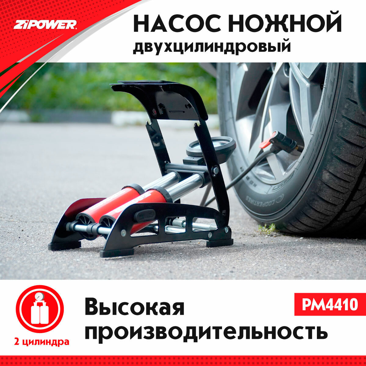 Ножной насос, двухцилиндровый Zipower Hi-Gear PM4410