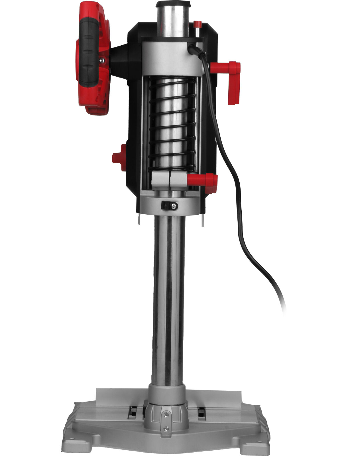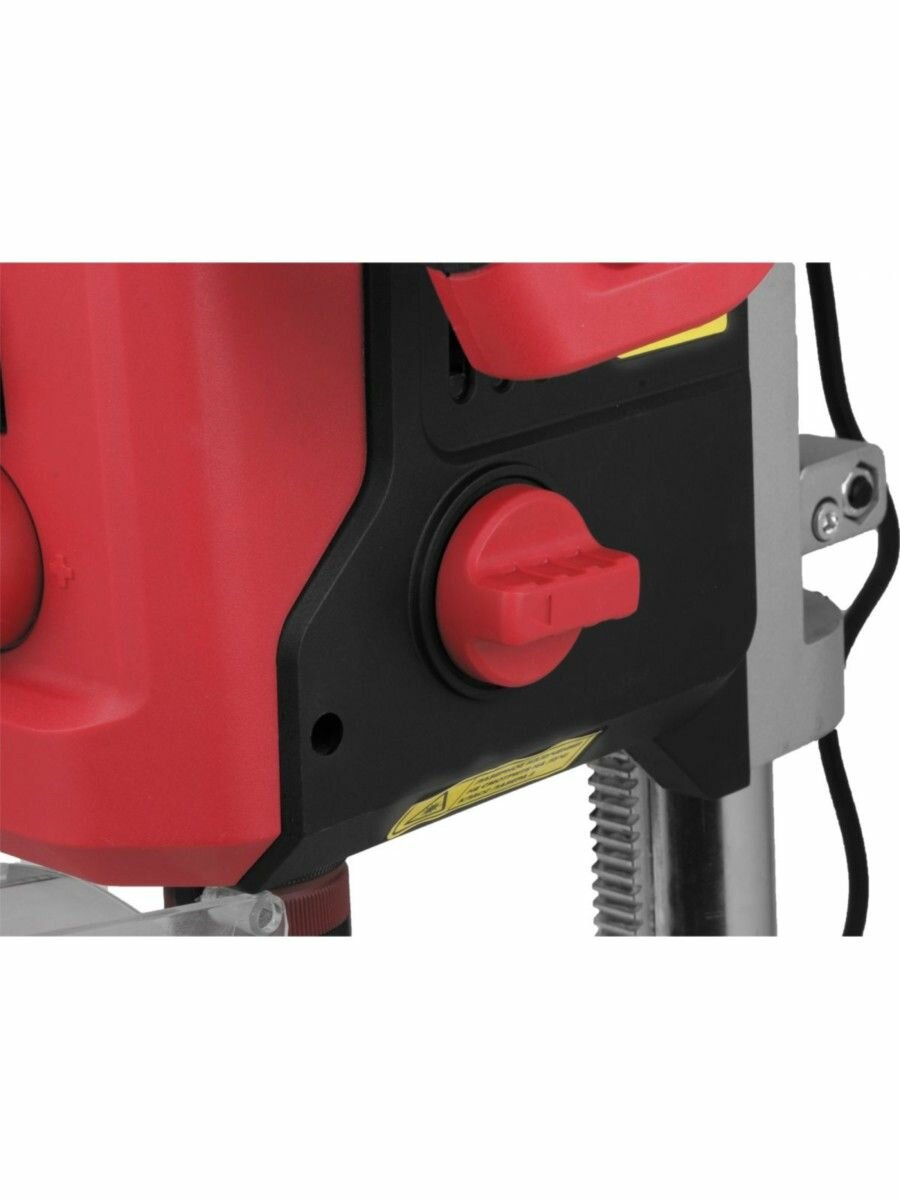 | Плюсы: | Сделан довольно прочно, две скорости механических. Работает и без включения электроники, регулировка оборотов, поддержание оборотов. Включение электроники позволяет использовать лазерный прицел, видеть глубину сверления, количество оборотов. Тиски хоть и не традиционные, но деталь зажимают крепко, можно и трубу сверлить. Патрон современный, ключ не нужен. |