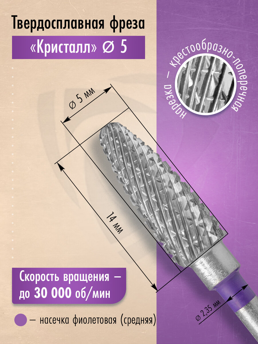 Кристалл, Твердосплавная фреза 23235 (кукуруза, конус), мелкая, D5, L14