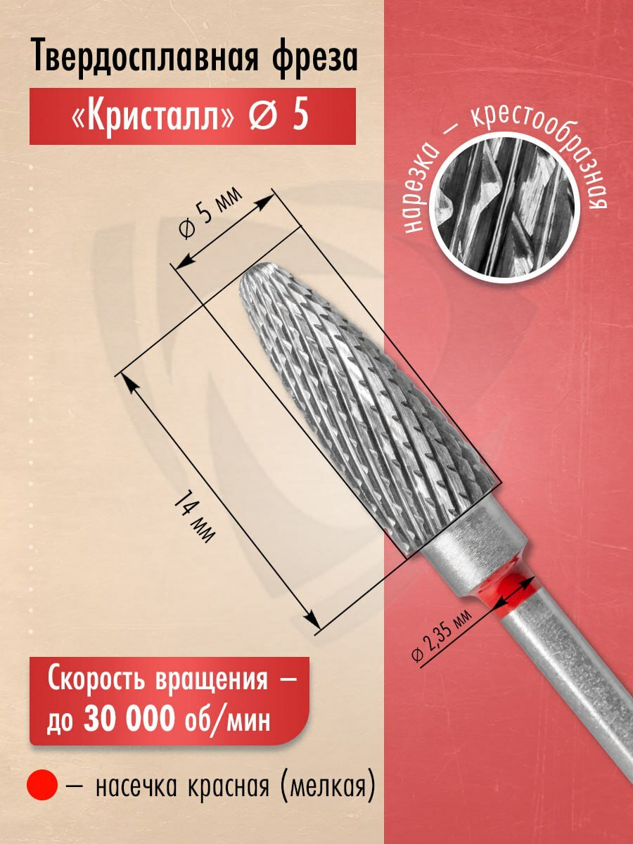 Кристалл, Твердосплавная фреза 21235 (кукуруза, конус), мелкая, D5, L14