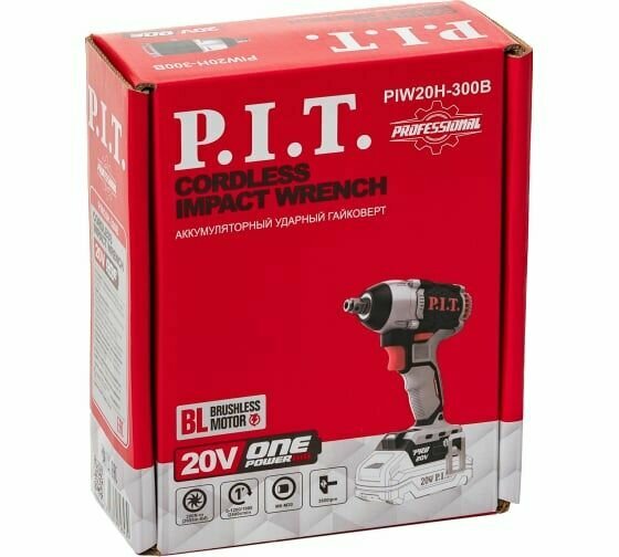 Гайковерт ударный аккумуляторный бесщеточный P.I.T. OnePower PIW20H-300B/4, 20В, 300Нм, 1 акб 4Ач, ЗУ, кейс