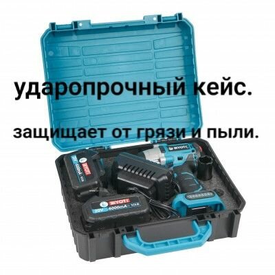 | Комплектация | Гайковерт аккумуляторный; Аккумулятор сменный - 2шт.; Зарядное устройство с индикацией; Головка; Кейс пластиковый. |