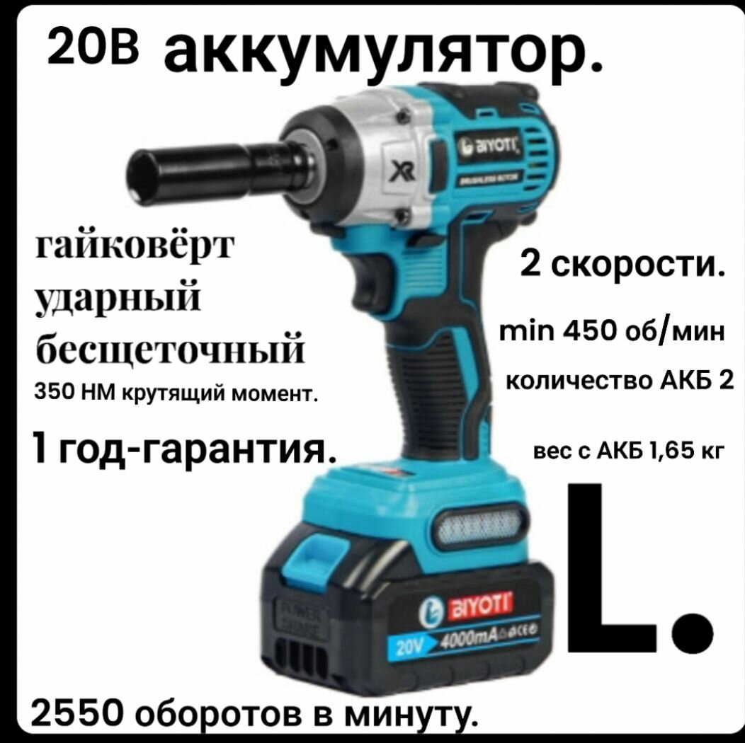 Гайковерт аккумуляторный ударный бесщеточный 20В, 350 Нм, BIYOTI / Винтоверт интересное: