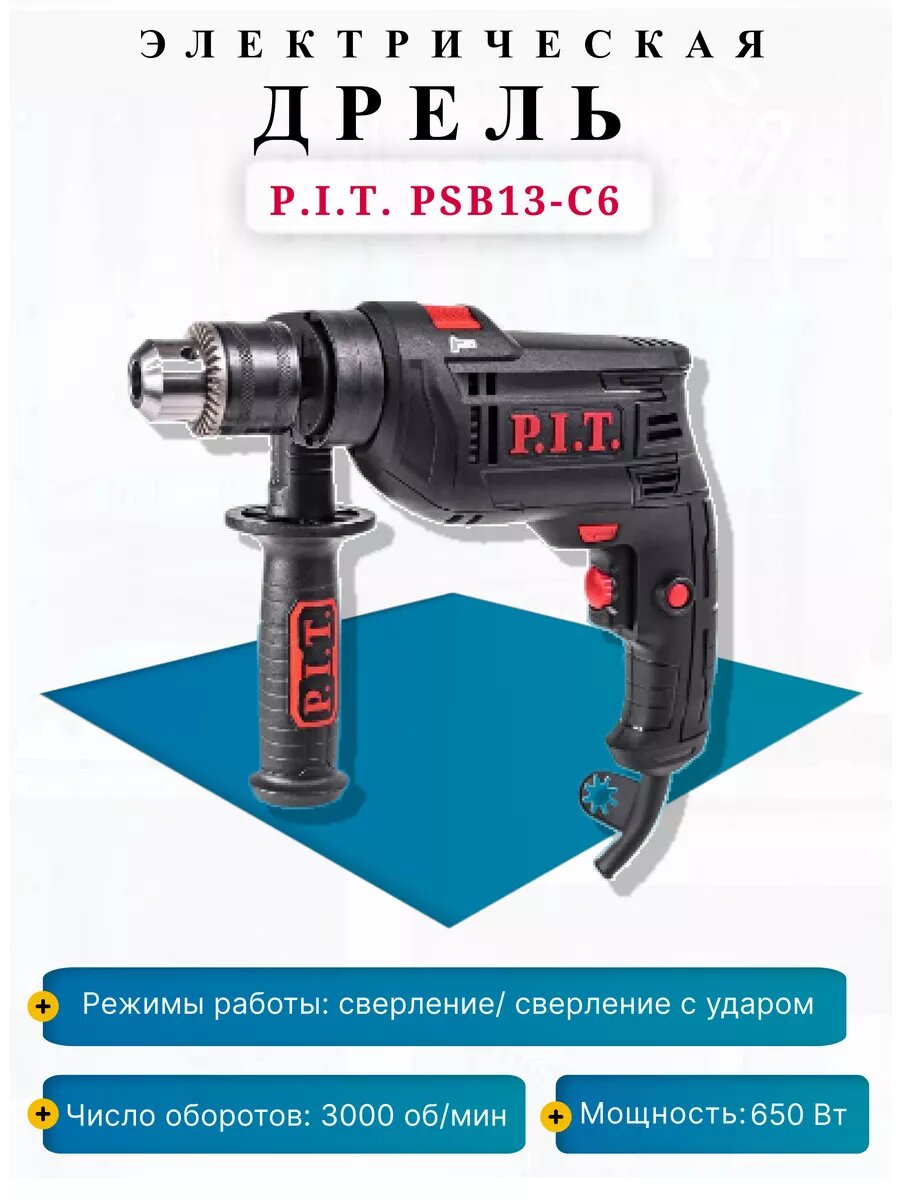 Дрель ударная PSB13-C6 P.I.T. (650Вт, ключевой патрон 13мм, 0-3000 об/мин)