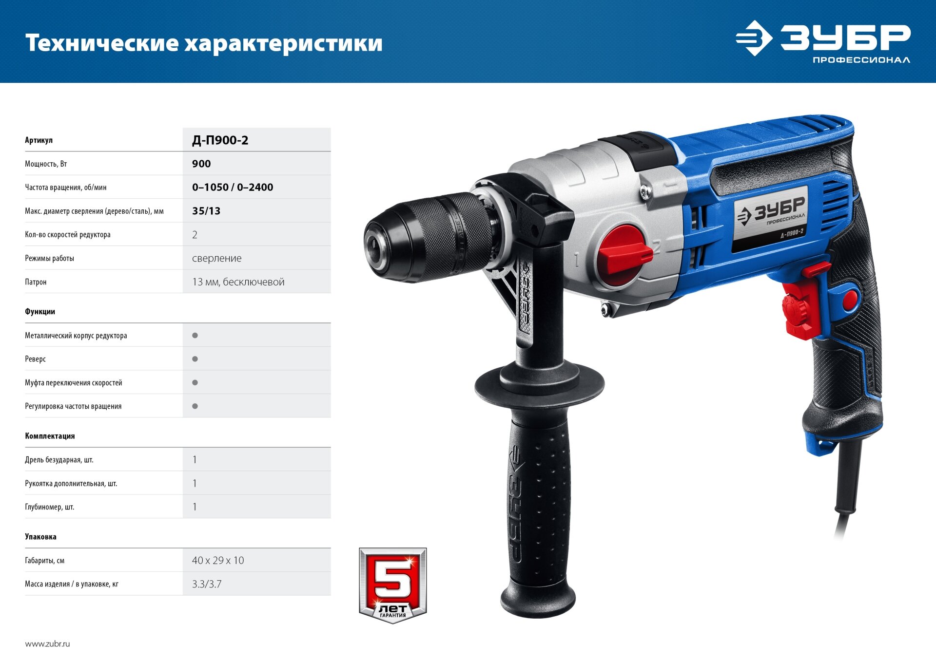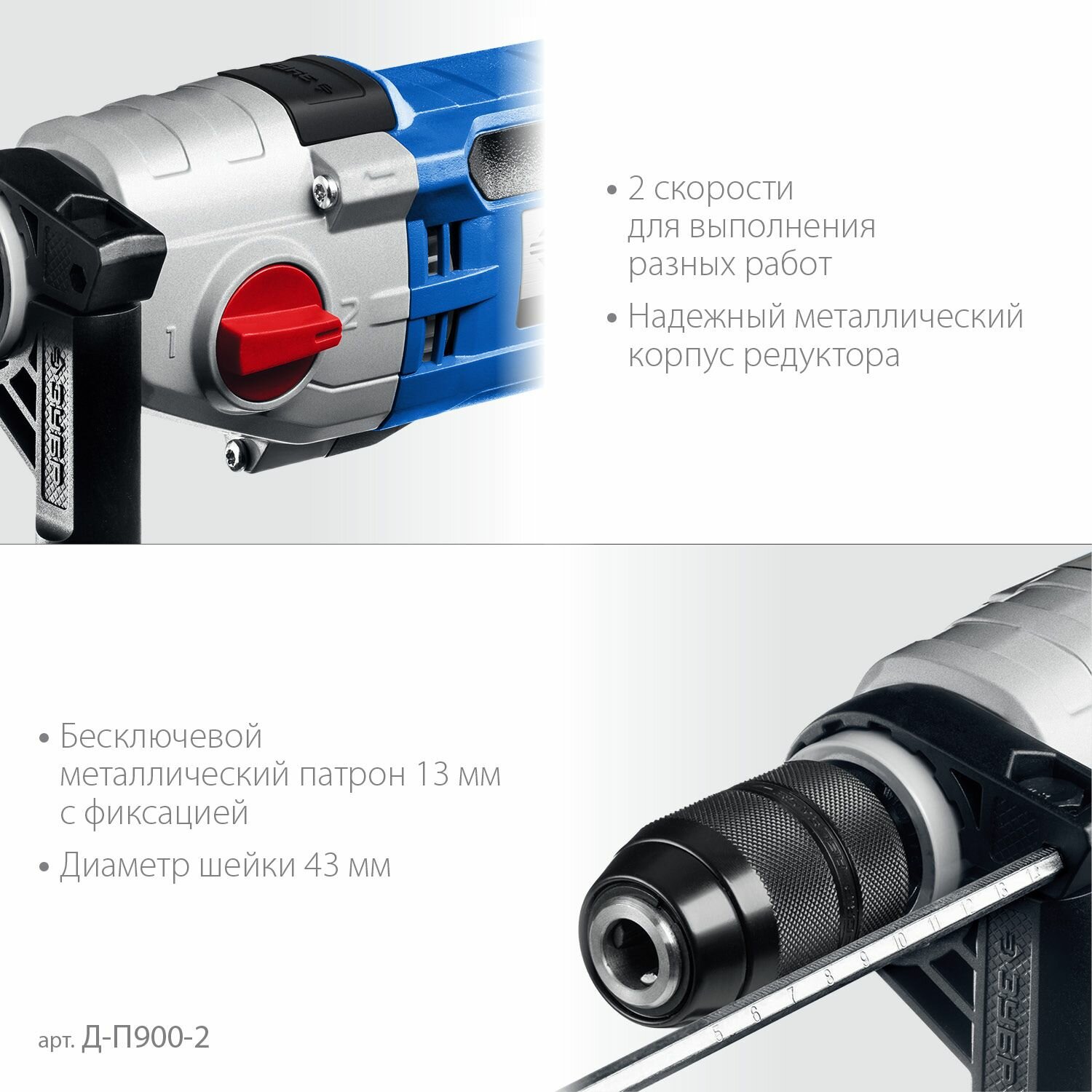 Дрель безударная, 900 Вт, 13 мм, 2-скоростная, мет. корпус, ЗУБР Профессионал интересное: