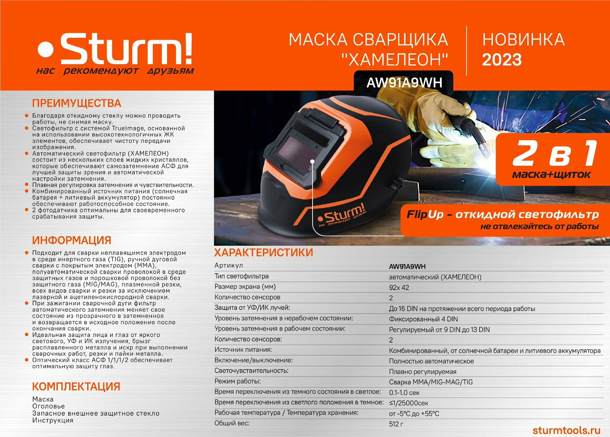 Сварочная маска Sturm! арт. AW91A9WH интересное: