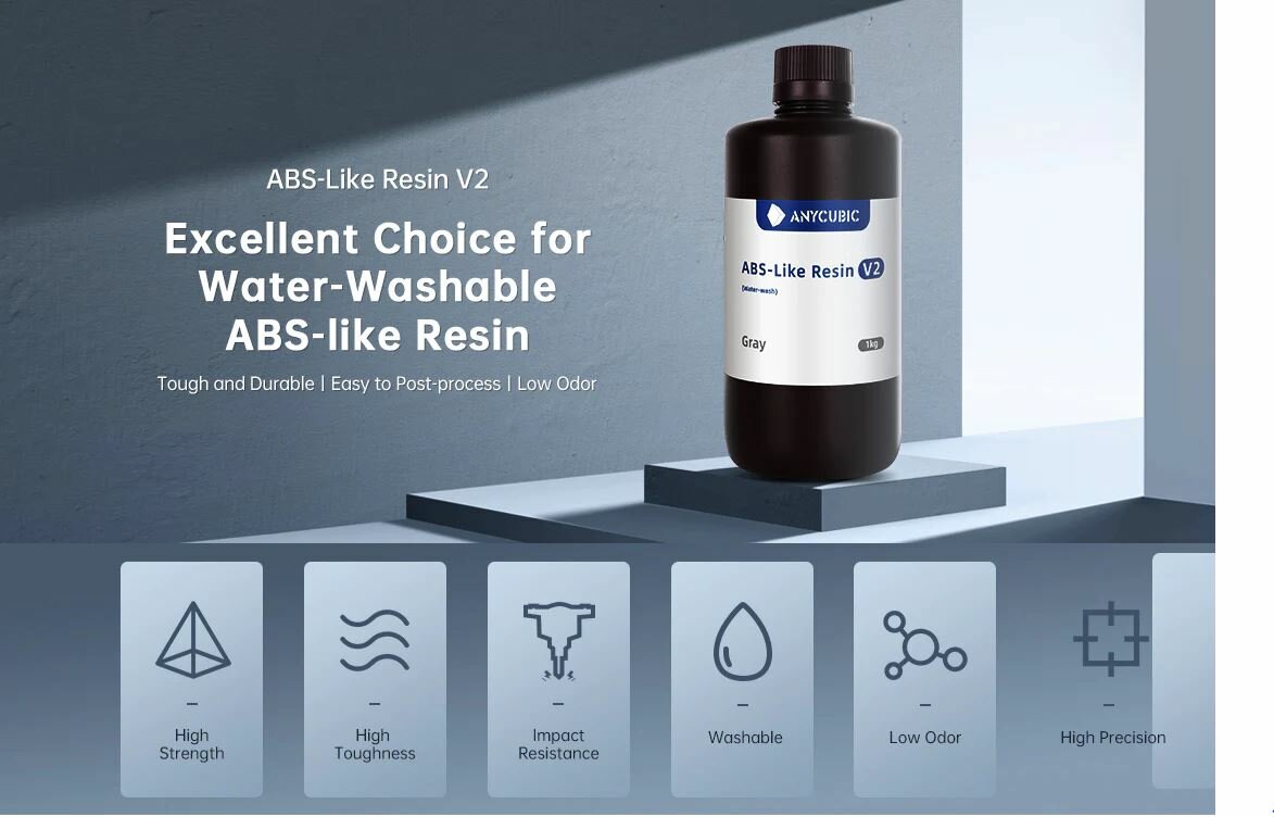 Купить Фотополимерная смола Anycubic ABS-LIKE Resin V2 - Серая (1кг.)