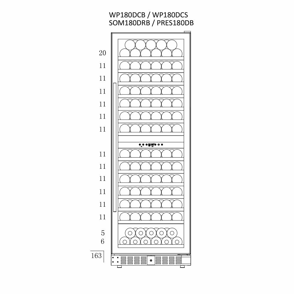 | Емкость винного шкафа, бут. | 163 |