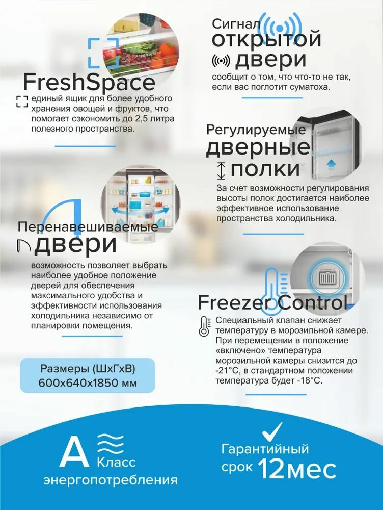| Минусы: | Пока что не могу сказать про недостатки, так как пользуюсь этим холодильником 3 дня ?правда есть одна маленькая загвоздочка звуковой сигнал слабоват когда дверь открыта или не плотно закрыта. |