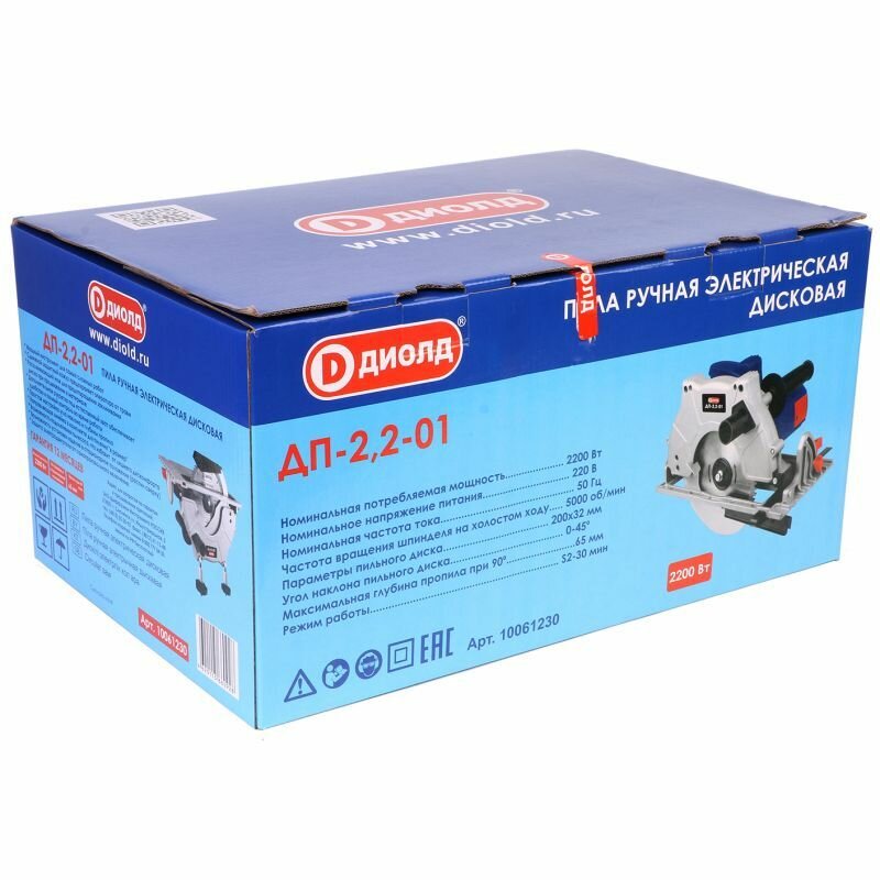 Пила дисковая циркулярная Диолд ДП-2,2-01, 2200 Вт, диск 200мм, 5000 об/мин, российский производитель