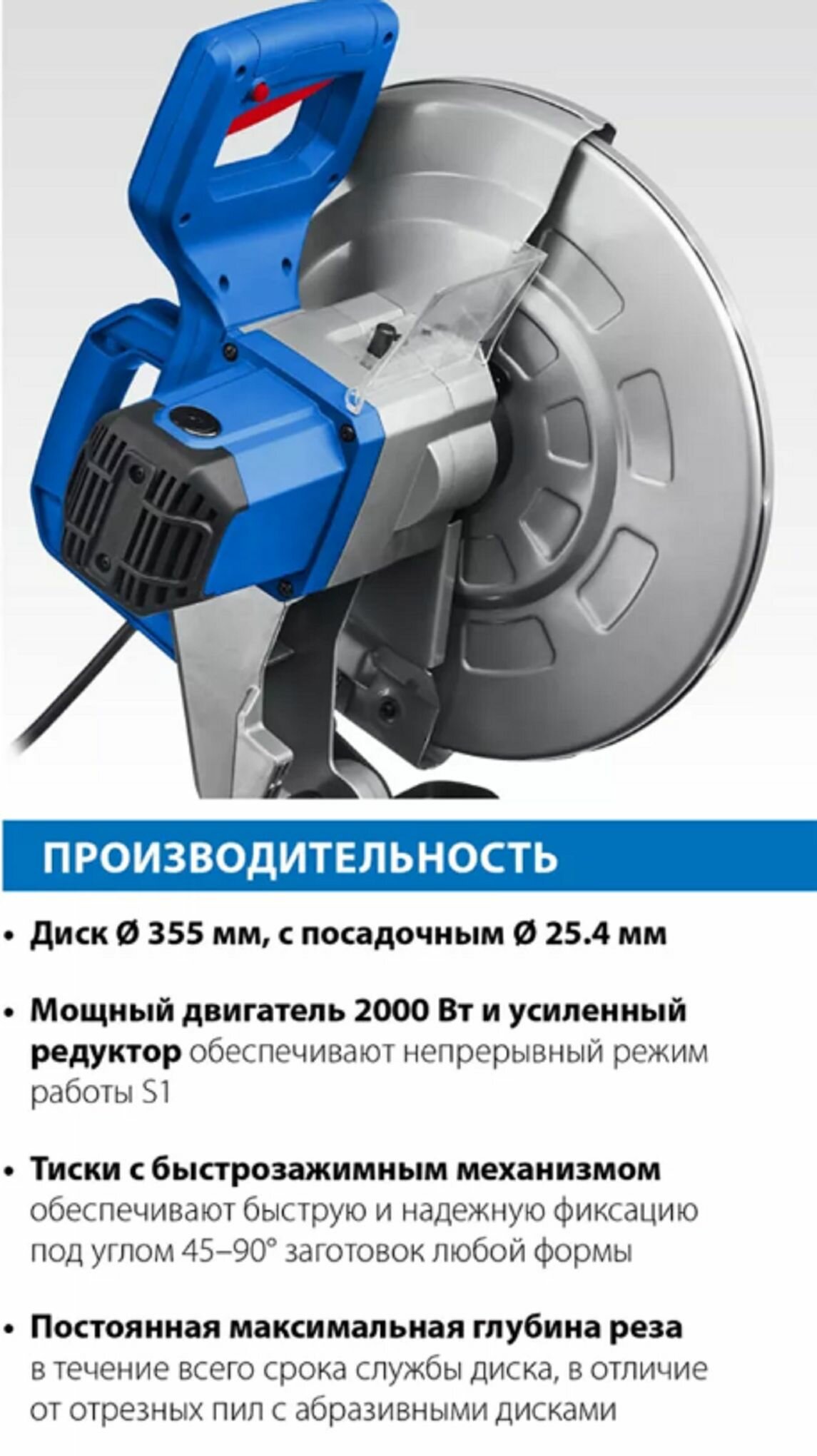 Отрезная пила по металлу, d355 мм, 2000 Вт Зубр ПОМ-355