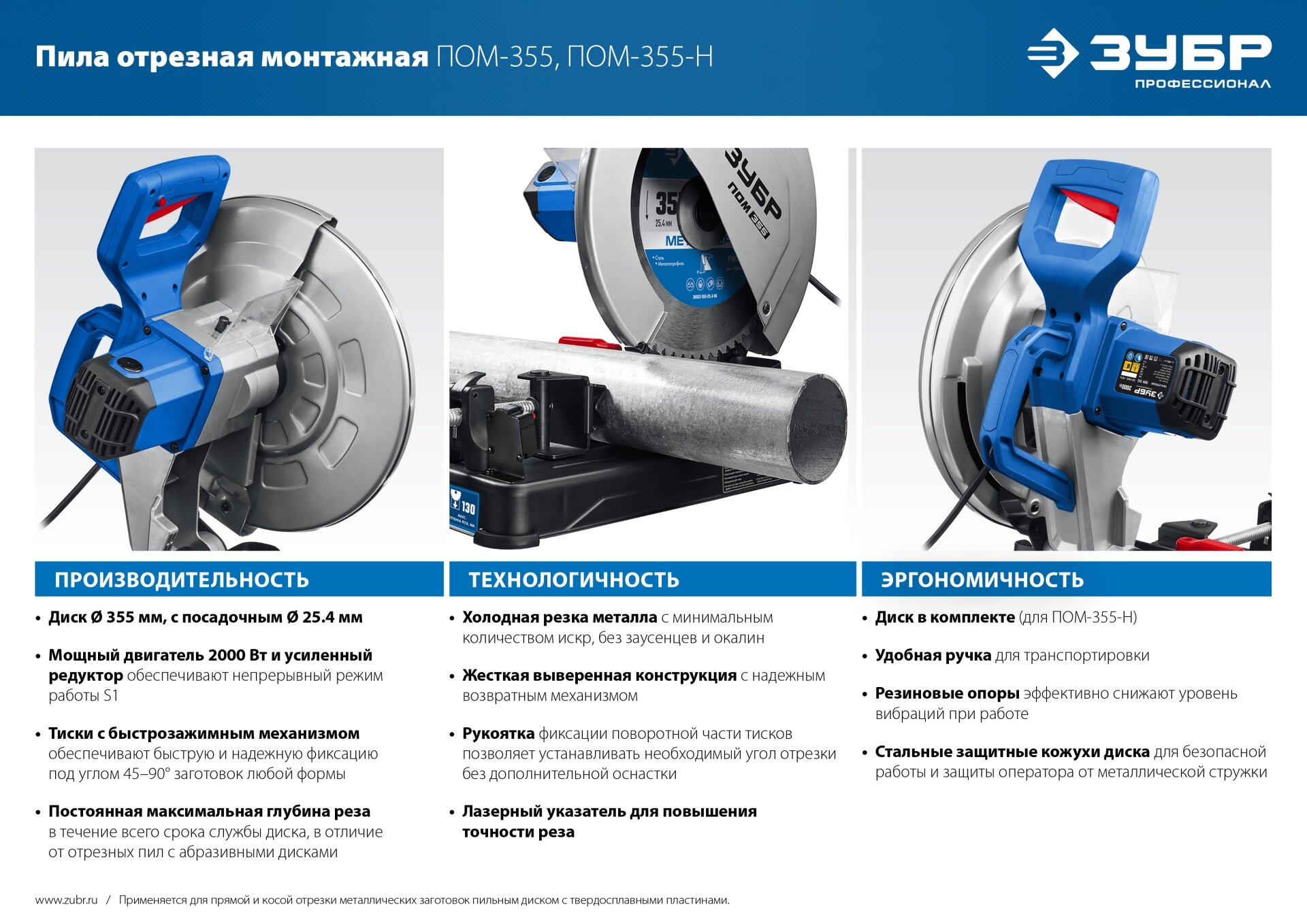 Пила монтажная (отрезная) ЗУБР ПОМ-355-Н