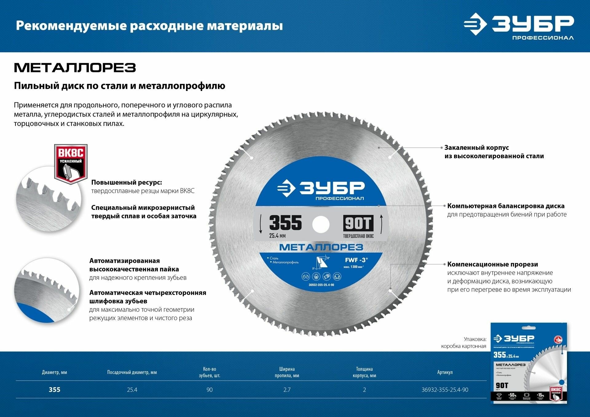 Монтажная пила (отрезная) ЗУБР 355 мм, 2400 Вт, серия Профессионал