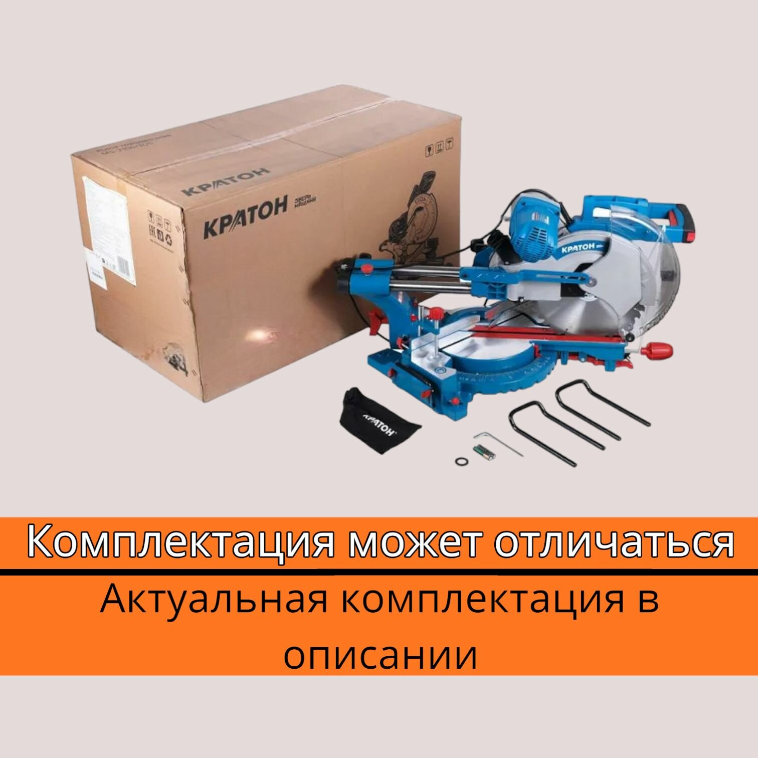 | Комплект поставки | 1. Пила торцовочная Кратон 2.Ключ шестигранный 3 шт. 3.Болт+гайка 2х2 шт. 4.Ручка 1 шт. 5.Струбцина 1шт. 6.Удлинитель стола 3 шт. 7.Упор угловой 1 шт. 8.Линейка направляющая 1шт. 9.Упор 1 шт. 10.Толкатель 1 шт. 11.Инструкция по эксплуатации 1шт. 12.Коробка картонная 1шт. |