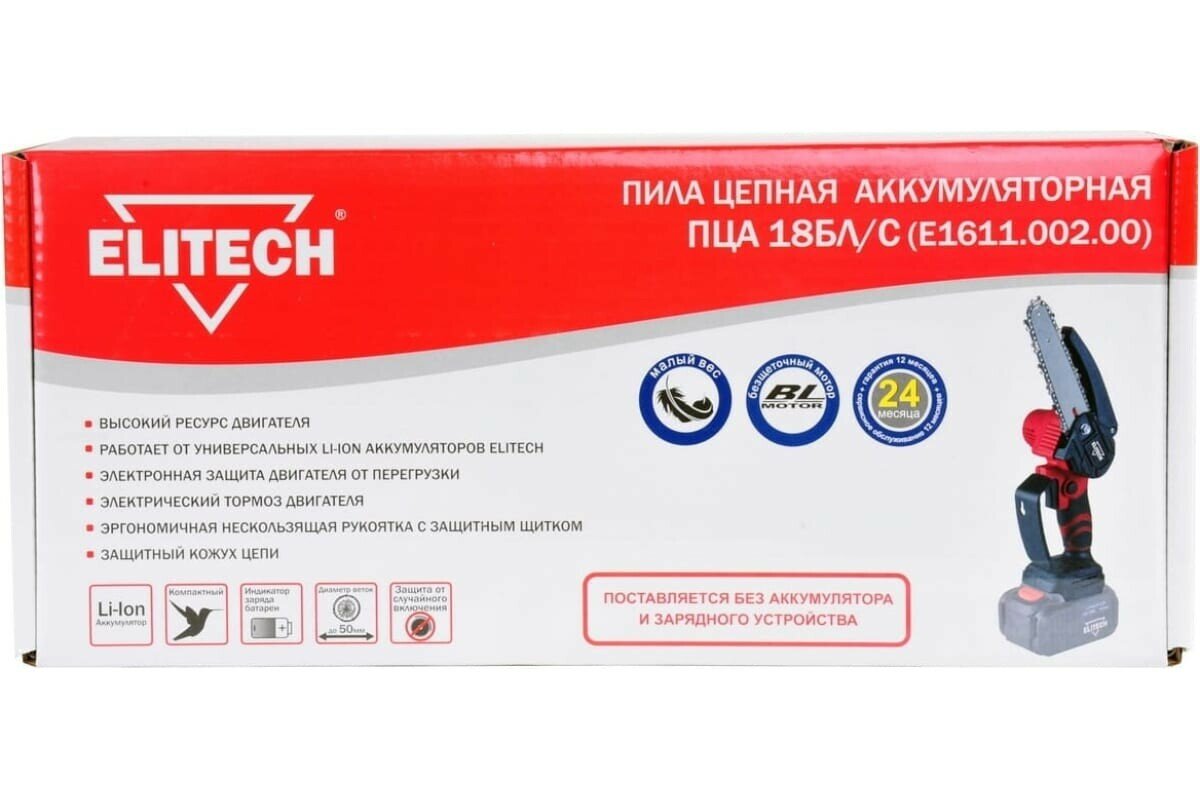 Купить Цепная пила Elitech ПЦА 18БЛ/С (E1611.002.00), аккумуляторная, без АКБ, без ЗУ [200561]