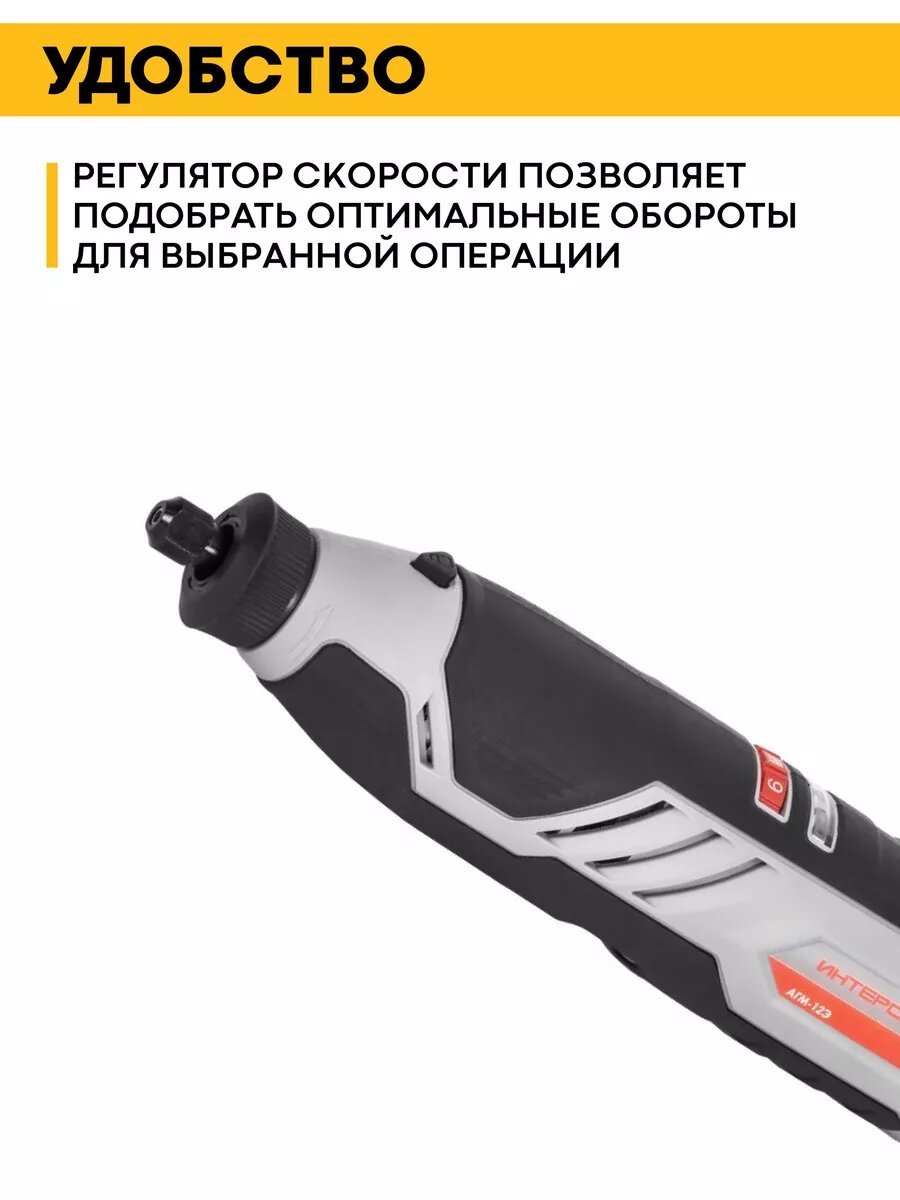 Шлифмашина прямая аккумуляторная ИНТЕРСКОЛ АГМ-12Э набор 58 пр. интересное: