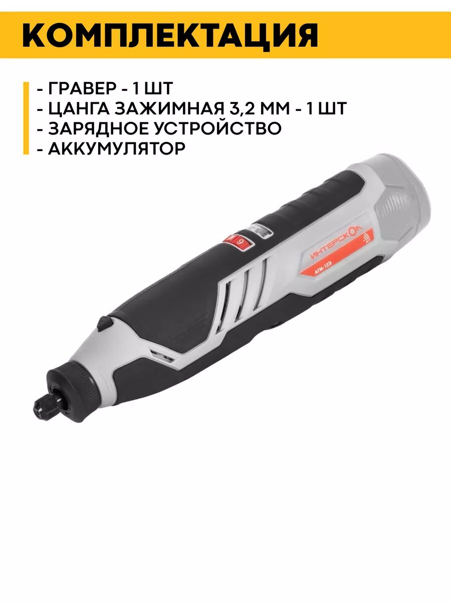 Гравер Интерскол АГМ-12Э аккум. АПИ-Т (Li-ion, кейс, 2 аккум, 2,0 Ач, ЗУ, набор 58 пр.)