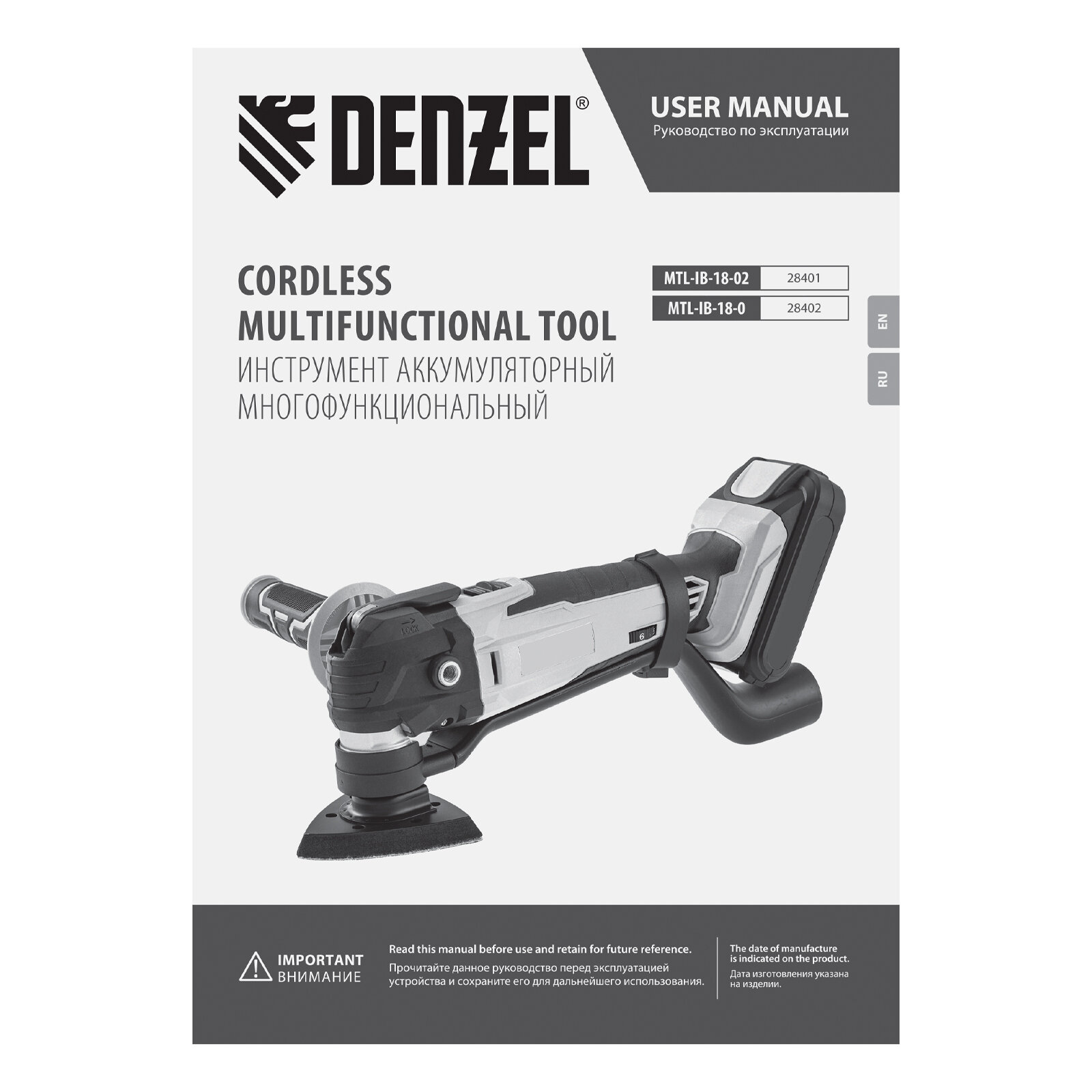 Многофункциональный инструмент аккумуляторный Denzel MTL-IB-18-0, Li-Ion, 18 В 28402