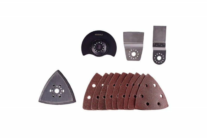 | Комплектация | Многофункциональный инструмент Аккумулятор 2.5Ач Зарядное устройство 3А Треугольная шлифовальная подошва 9 шлифлистов (3*P60/3*P80/3*P120) Шабер Погружное пильное полотно по дереву и пластику (HCS) Полотно по дереву, металлу и пластику (HSS) Инструкция по эксплуатации Коробка |