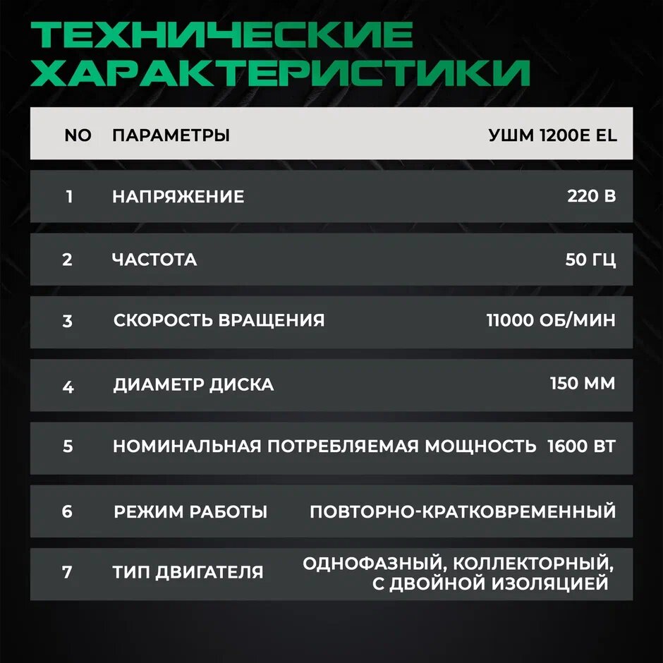 Болгарка / ушм 125 / болгарка 125 / ушм 125 с регулировкой оборотов / болгарка 125мм ELECTROLITE УШМ 1200Е EL ( 1200 Вт, 125 мм, регулировка оборотов, сетевая) шлифмашина угловая
