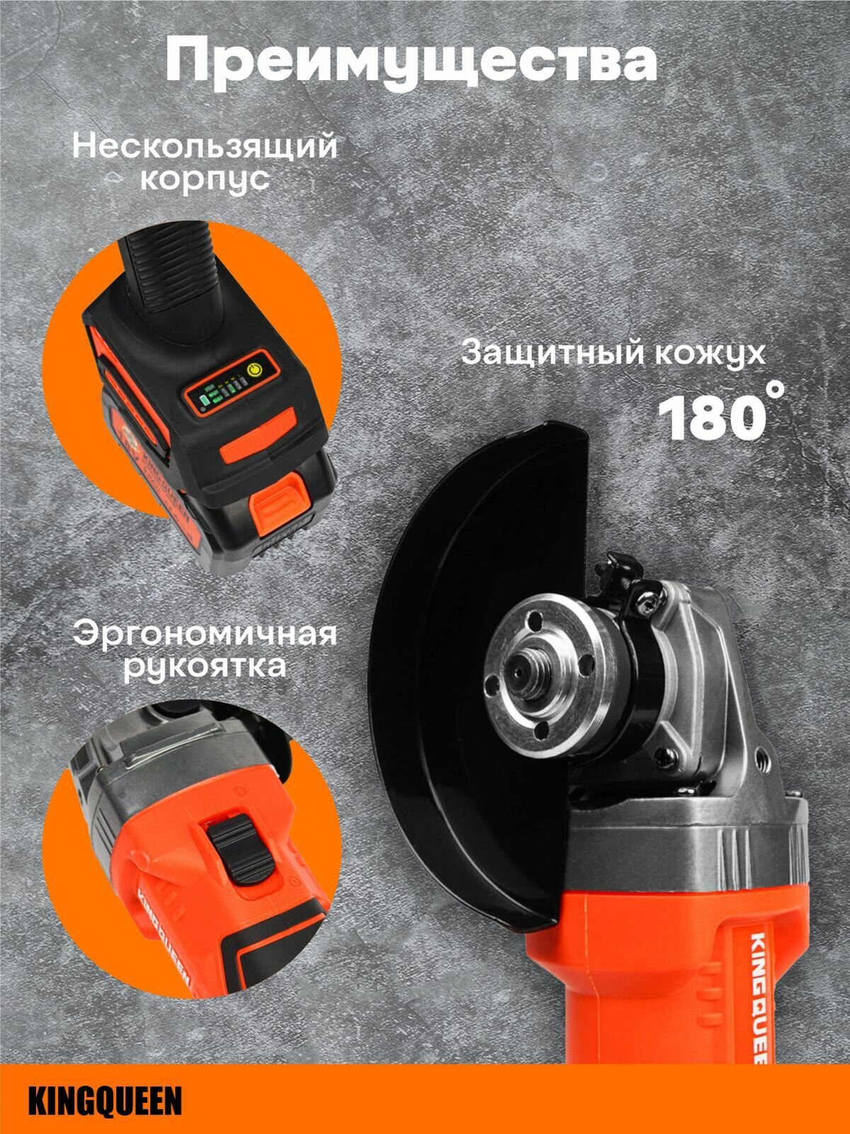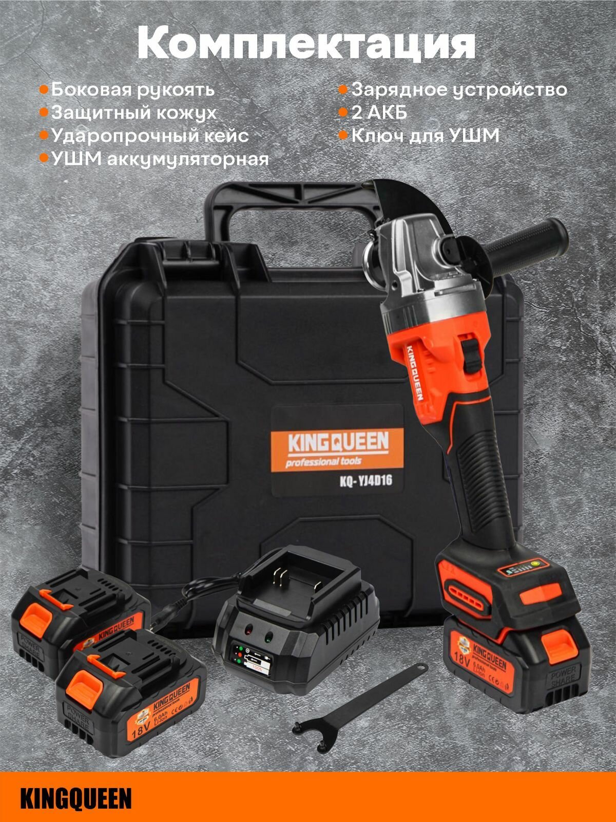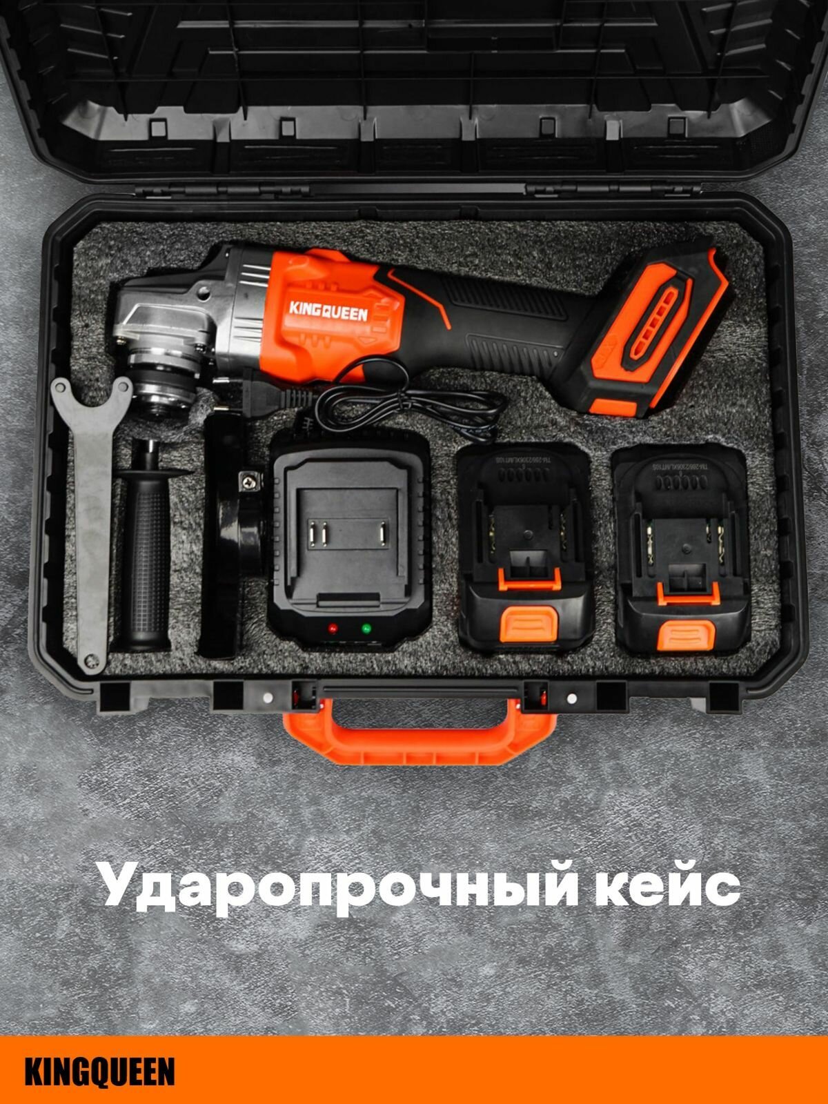 Угловая шлифовальная машина аккумуляторная KINGQUEEN PROFESSIONAL, 8500 об/мин болгарка бесщеточная УШМ 125 мм, 4.0А*Ч